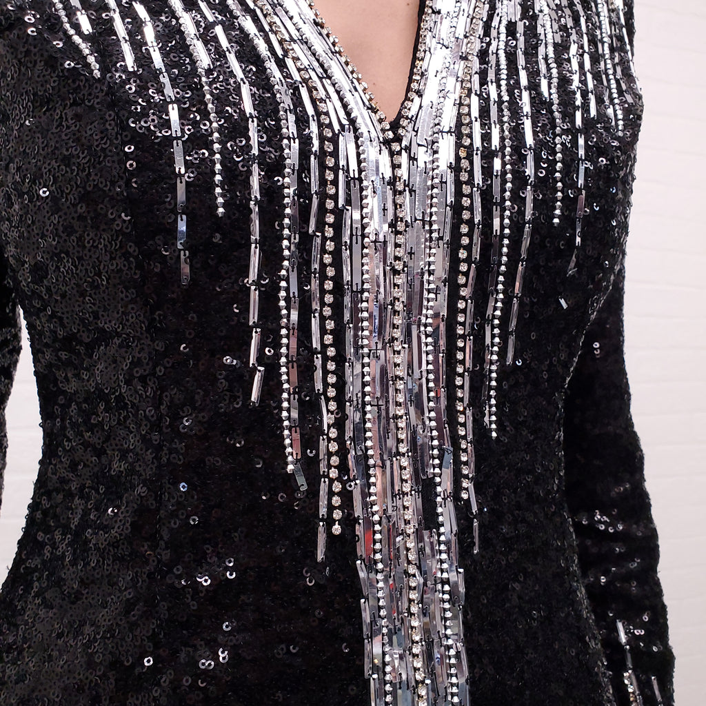 BALMAIN EMBELLISHED RUNWAY CREPE MINI DRESS - SIZE 38