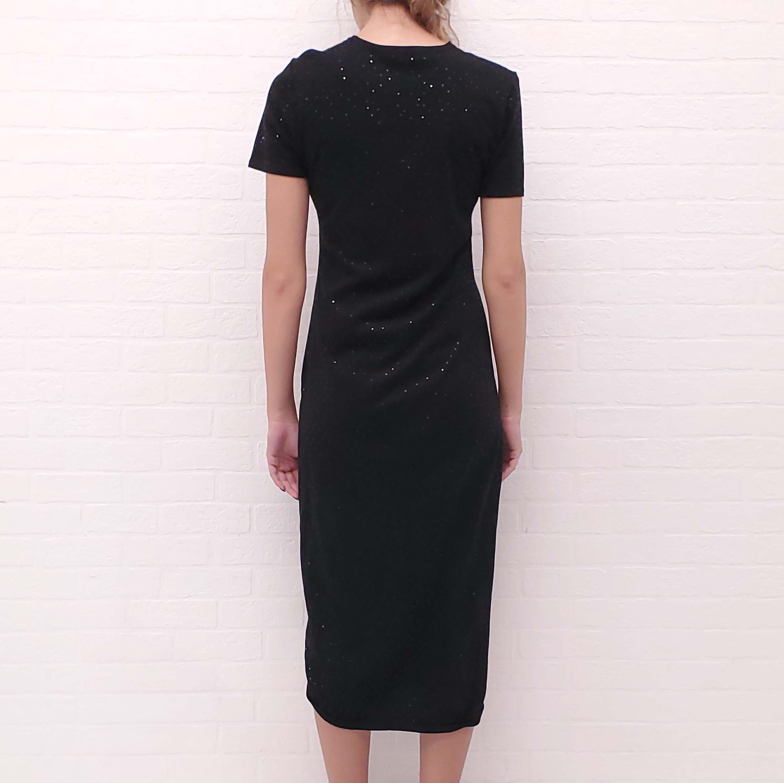 CHANEL 2021 BLACK SHORT SLEEVE MAXI DRESS WITH FLORAL LOGO AND SEQUINS - SIZE 34