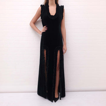 CHRISTOPHER KANE VELVET DRESS WITH RUFFLE DETAIL - SIZE 8