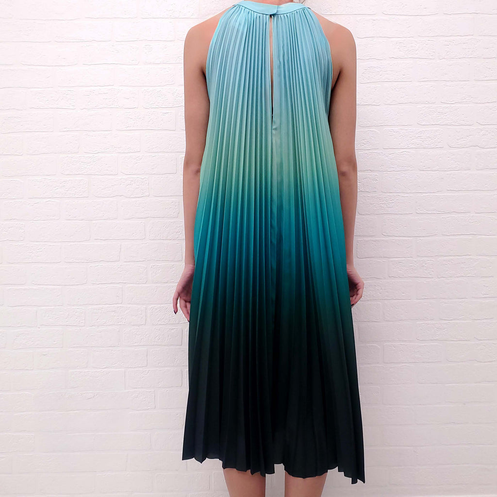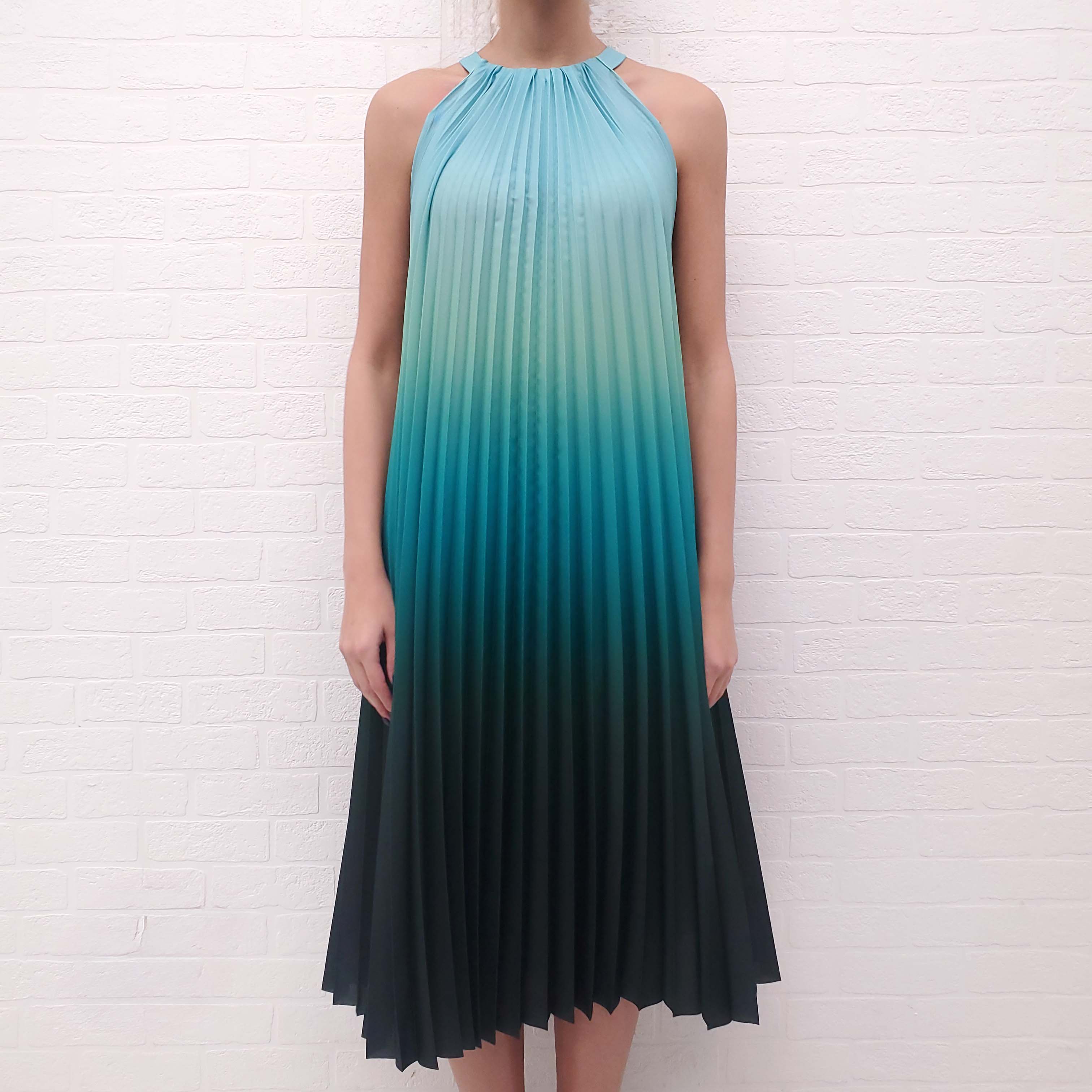 MAX MARA OMBRE PLEATED GREEN DRESS - SIZE 10