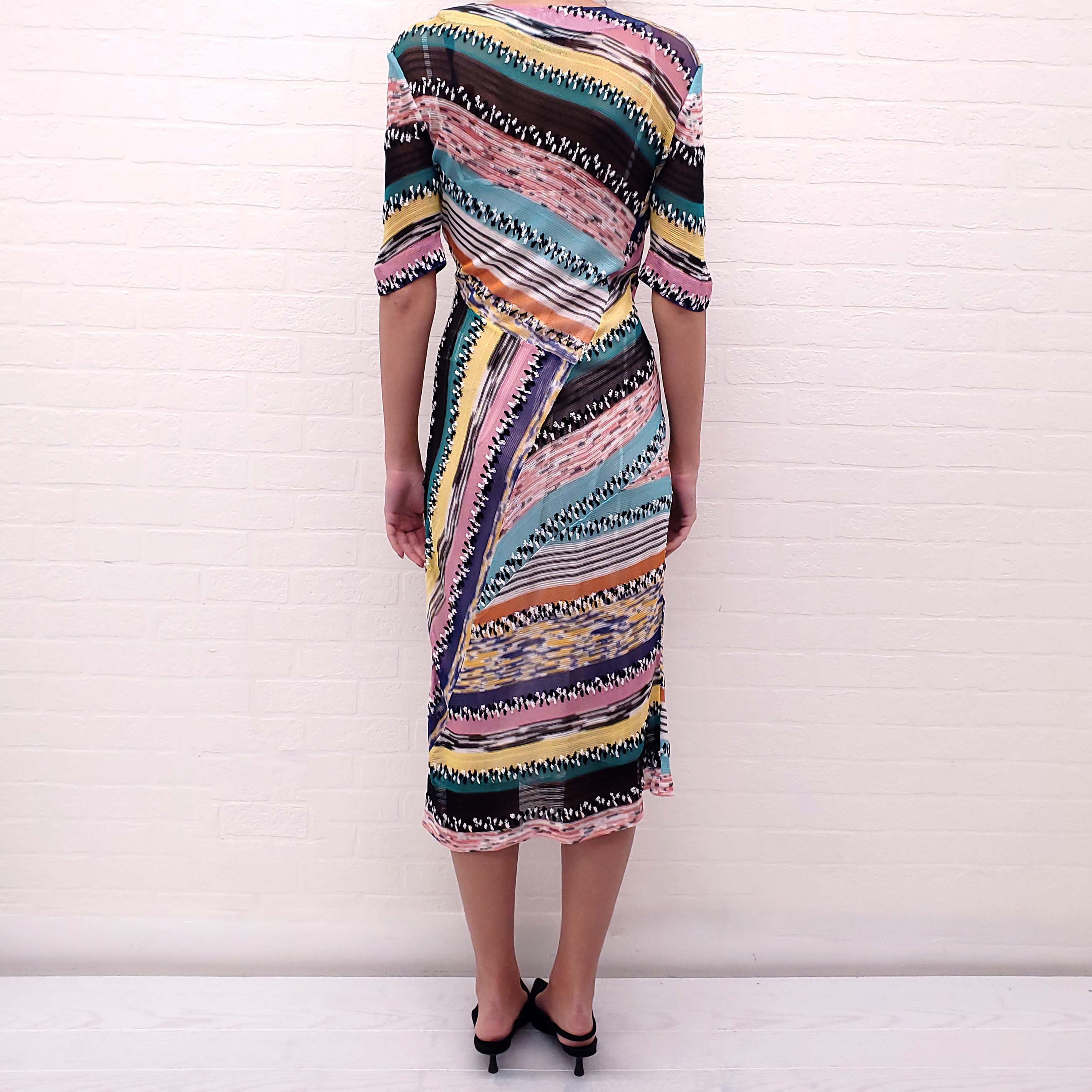 MISSONI MULTI-COLOUR KNIT LONG V-NECK SHORT SLEEVE DRESS - SIZE 42