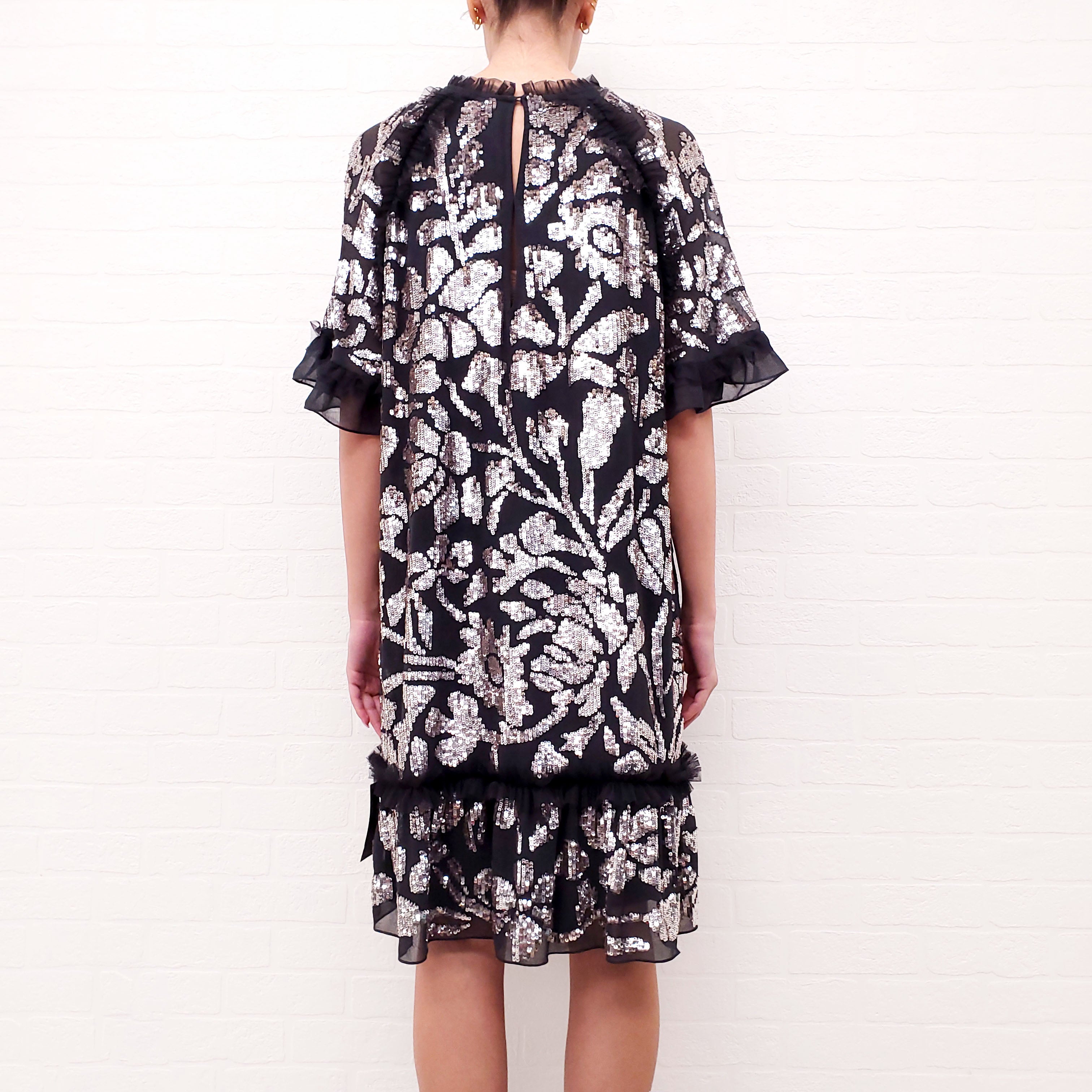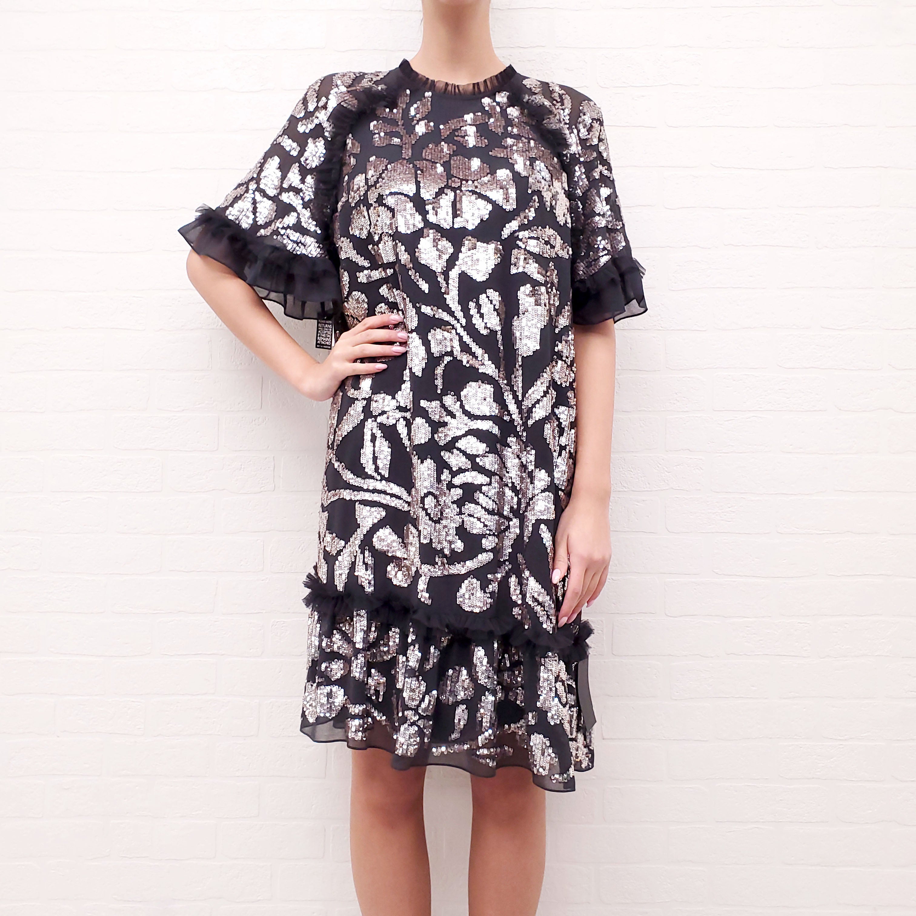 NEEDLE & THREAD BLACK DRESS WITH SILVER SEQUINS - SIZE L