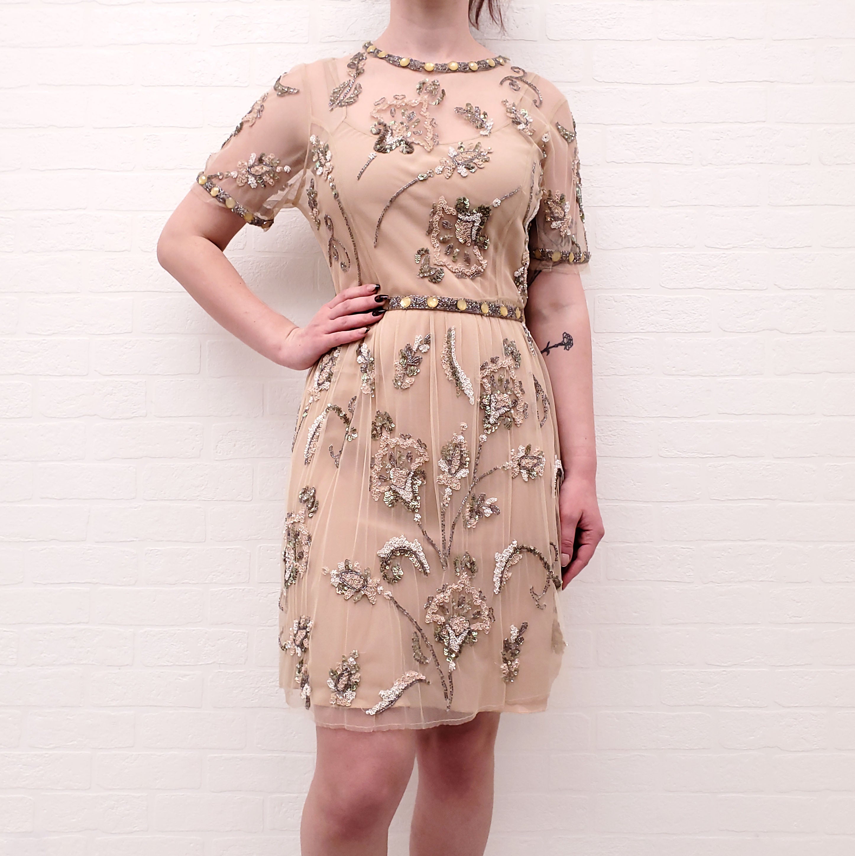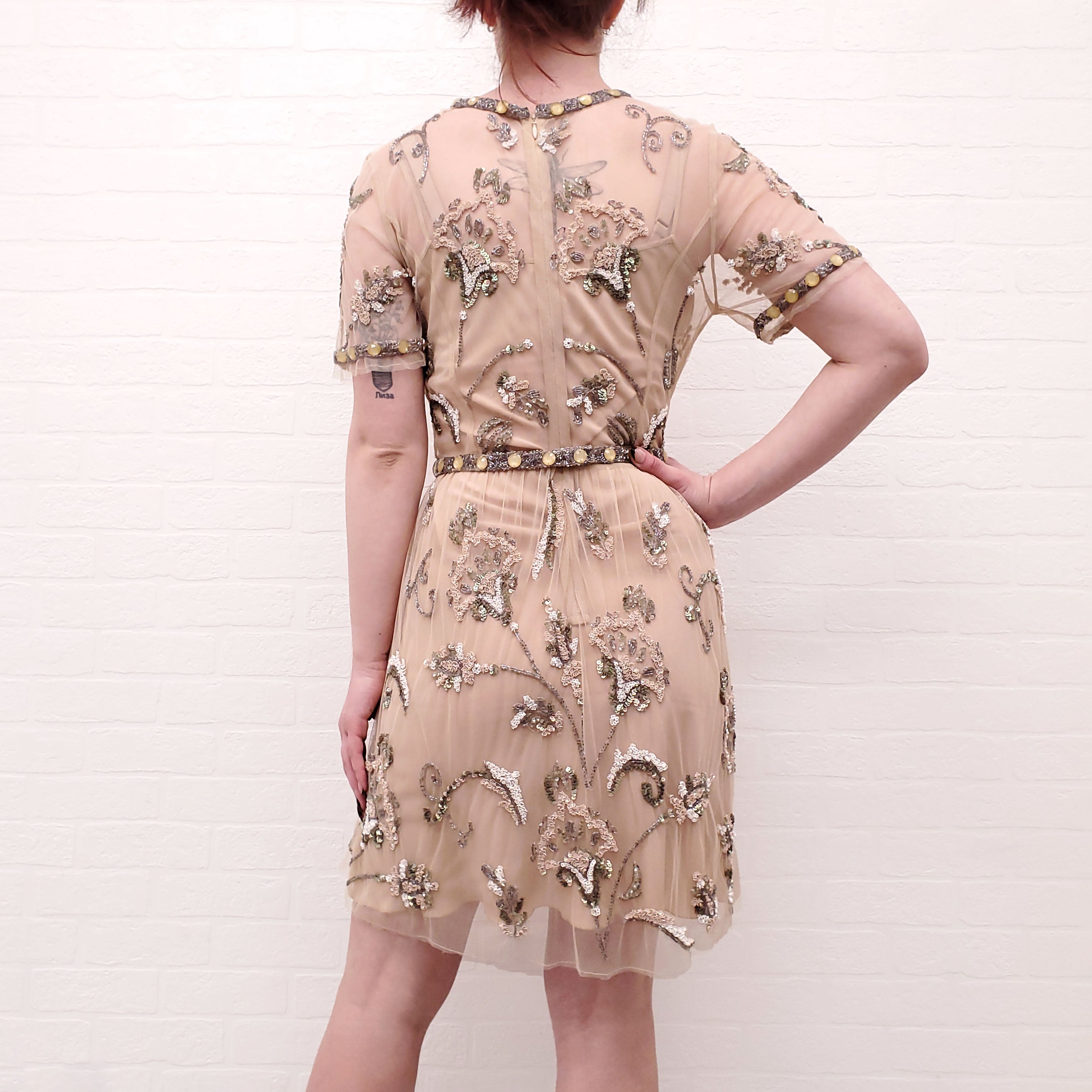 NEEDLE & THREAD GOLD BEADED DRESS - SIZE 10