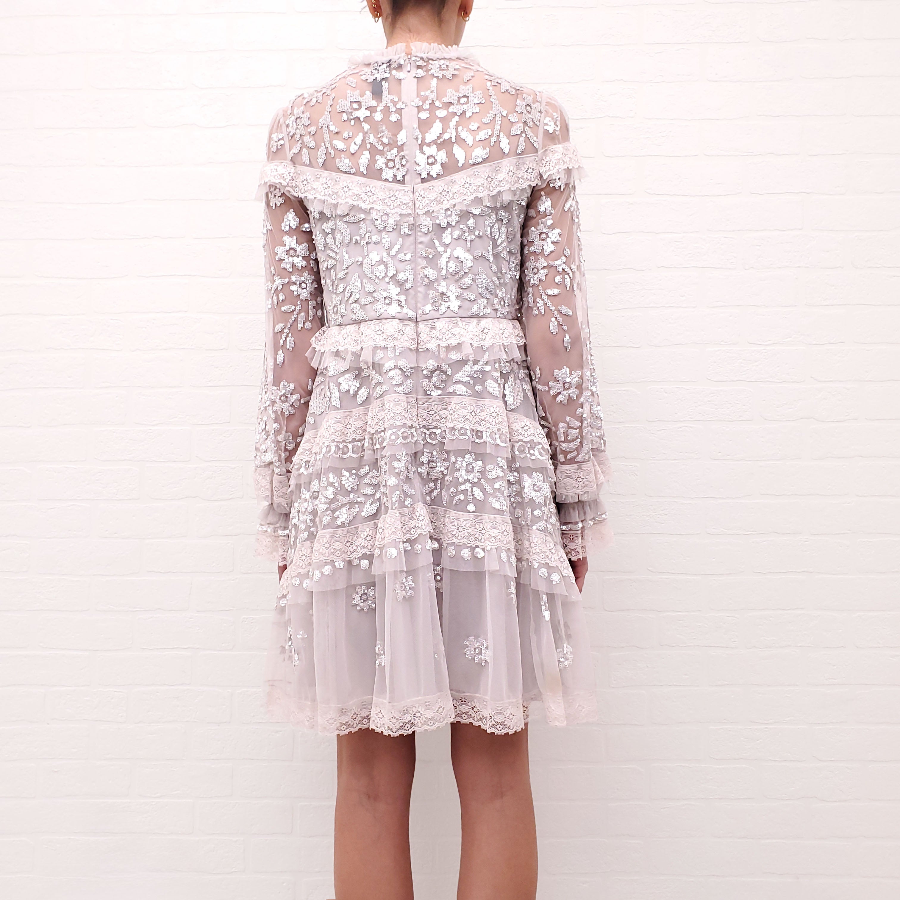 NEEDLE & THREAD GREY SEQUIN AND LACE DRESS - SIZE 6