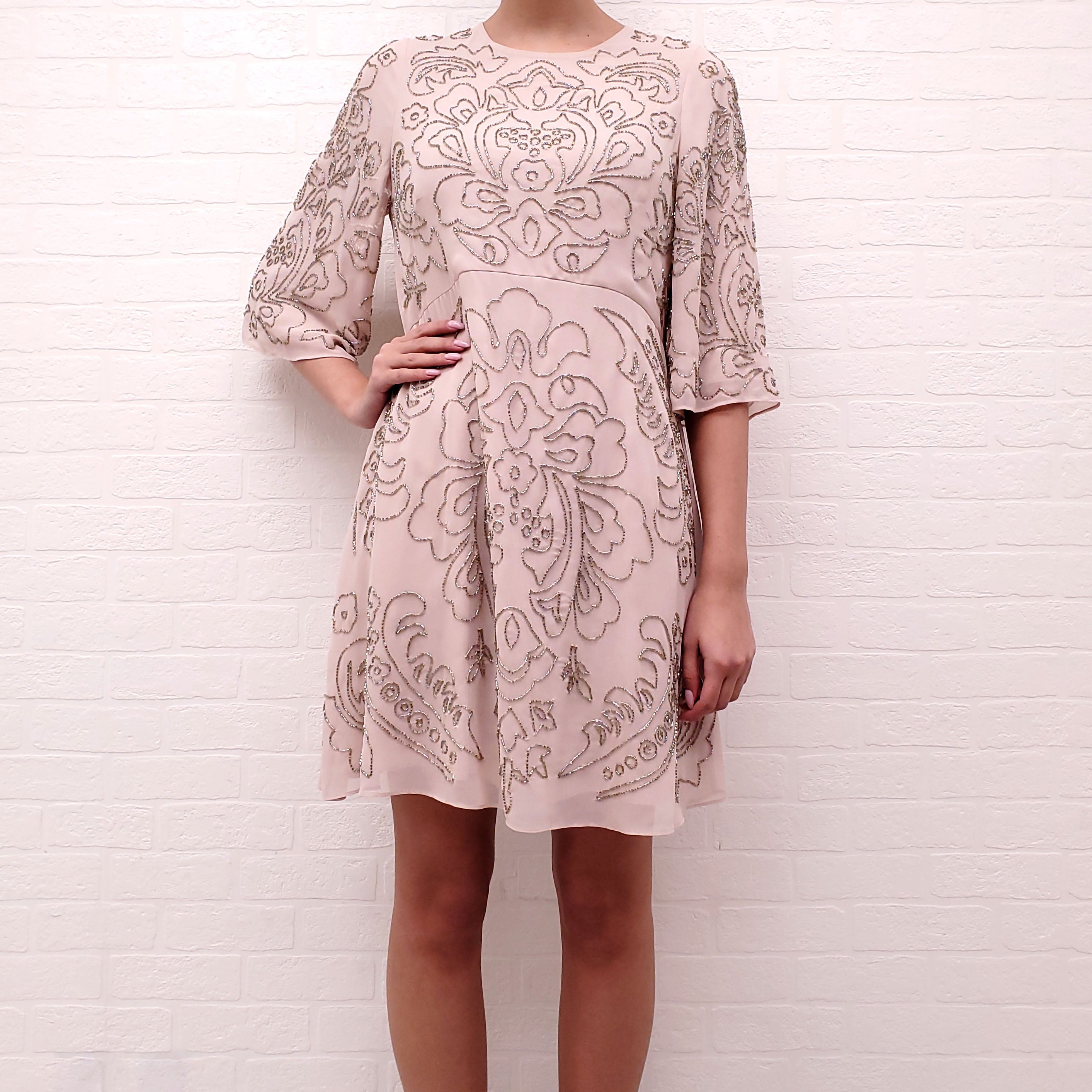 NEEDLE & THREAD PINK DRESS WITH GOLD BEADED - SIZE 8