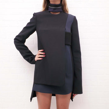 PACO RABANNE BLACK AND NAVY TURTLENECK DRESS - SIZE 34