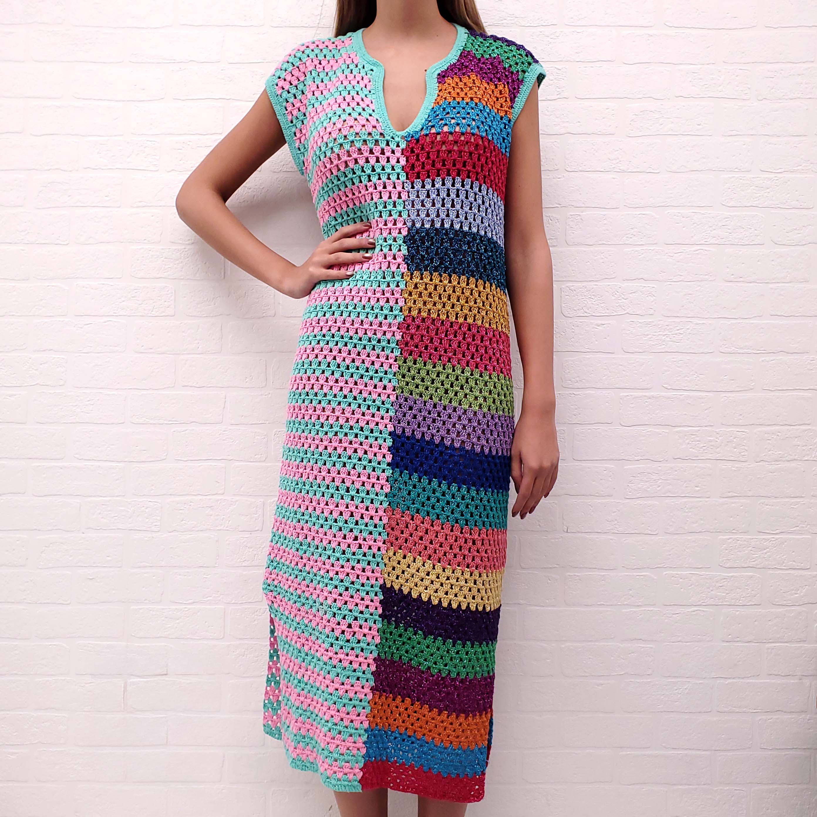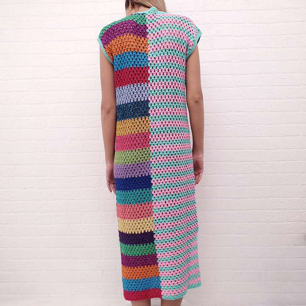 ROSE CARMINE TWO PATTERNED LONG CROCHET DRESS - SIZE 1/S