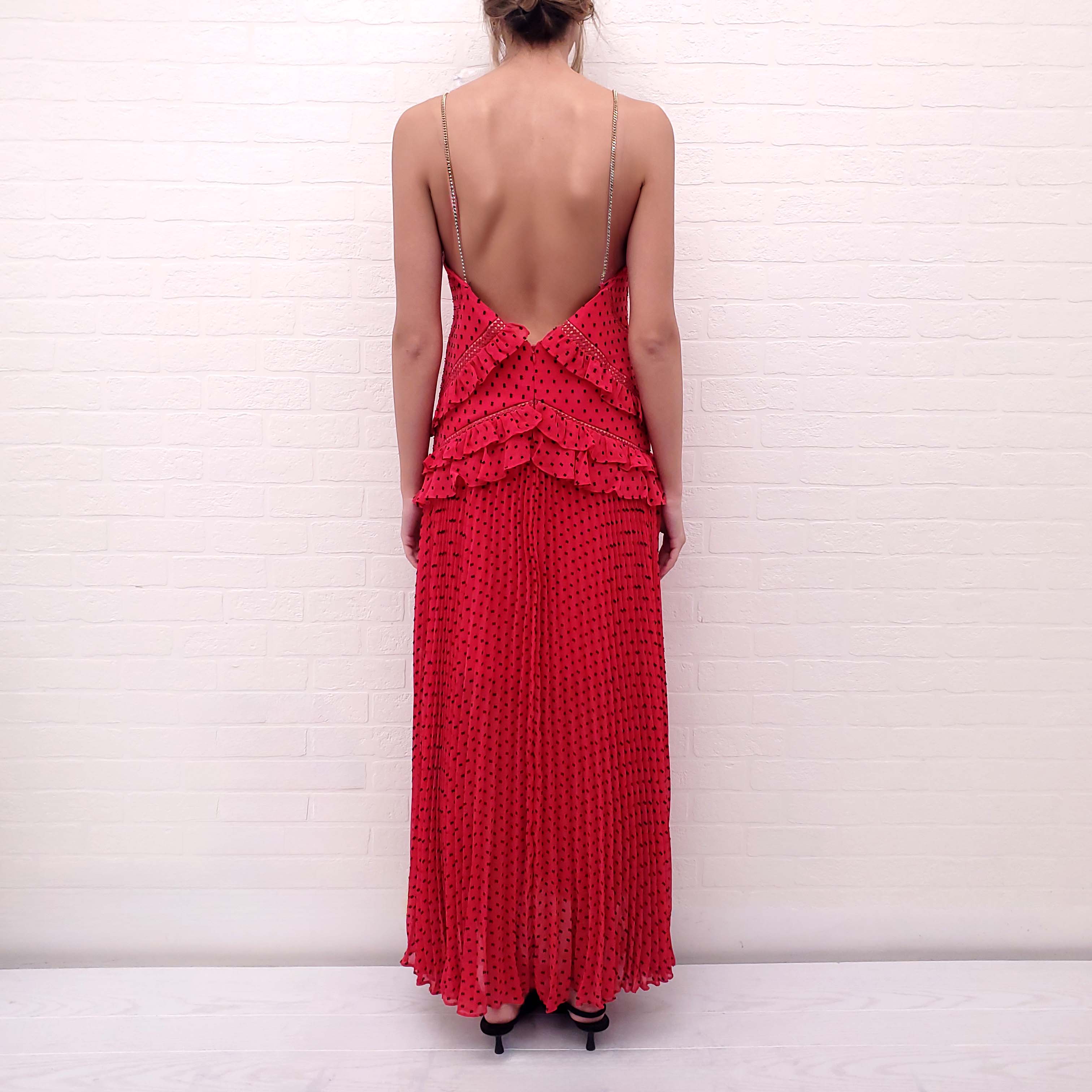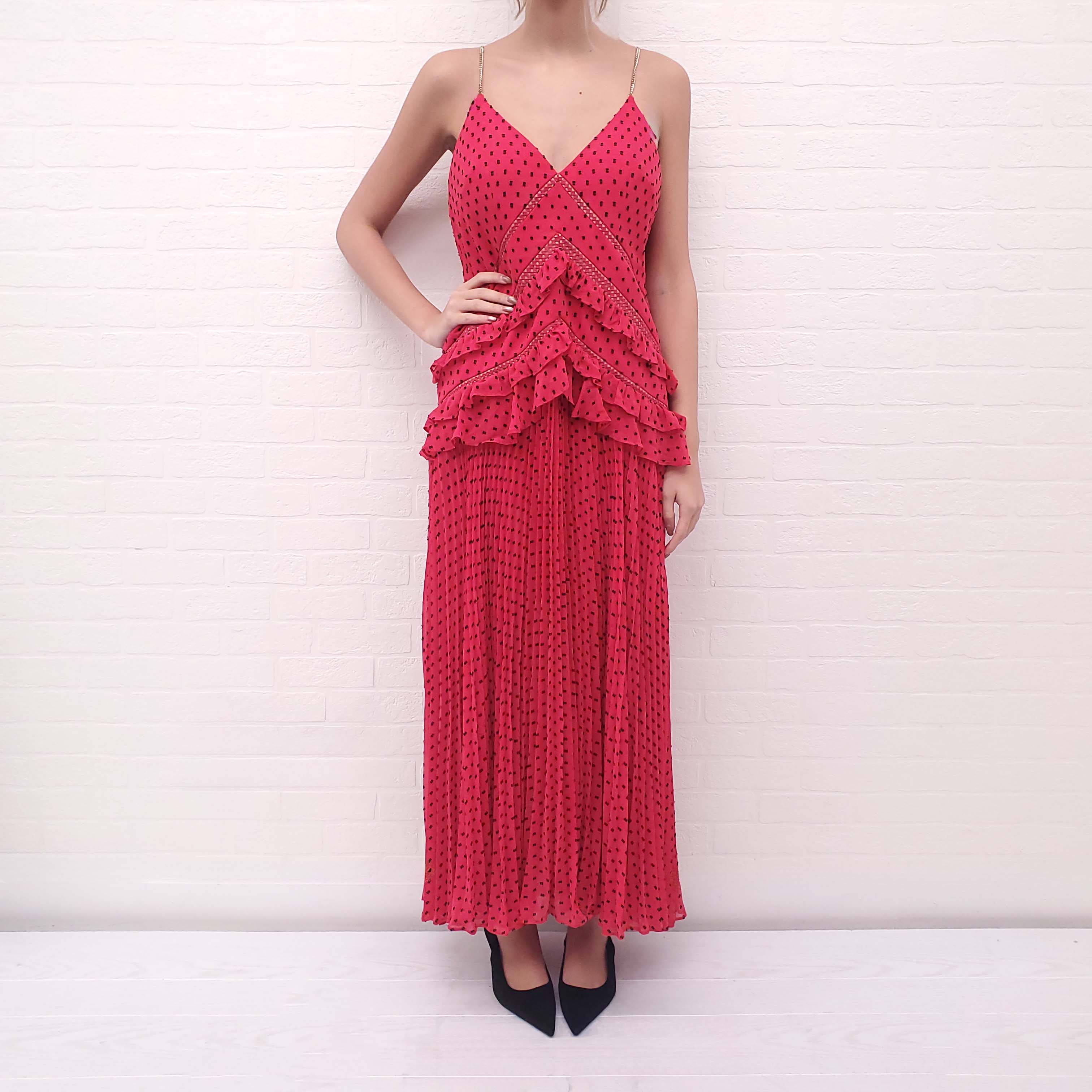 SELF-PORTRAIT RED POLKA DOT PLEATED DRESS WITH FRILL DETAIL - SIZE 6