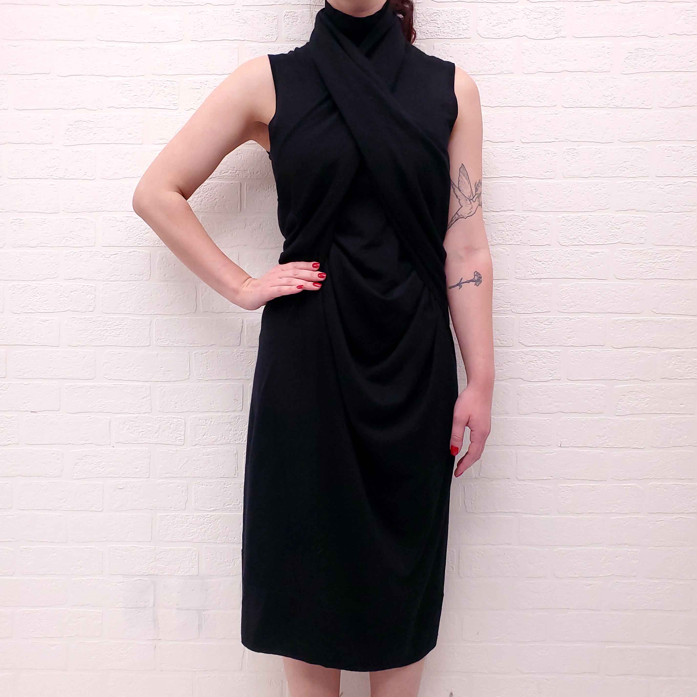 TOTEME BLACK SWEATER DRESS WITH DRAPED DETAIL - SIZE S