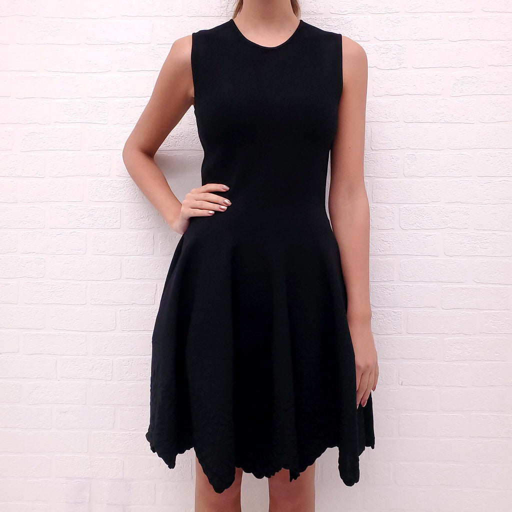 ALEXANDER MCQUEEN BLACK FITTED SCALLOPED PEPLUM DRESS - SIZE L