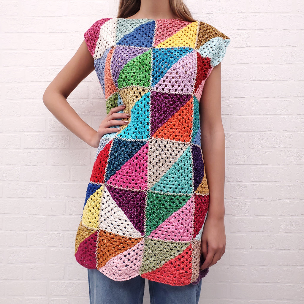 ROSE CARMINE MULTI-COLOUR TRIANGLE CROCHET DRESS - O/S