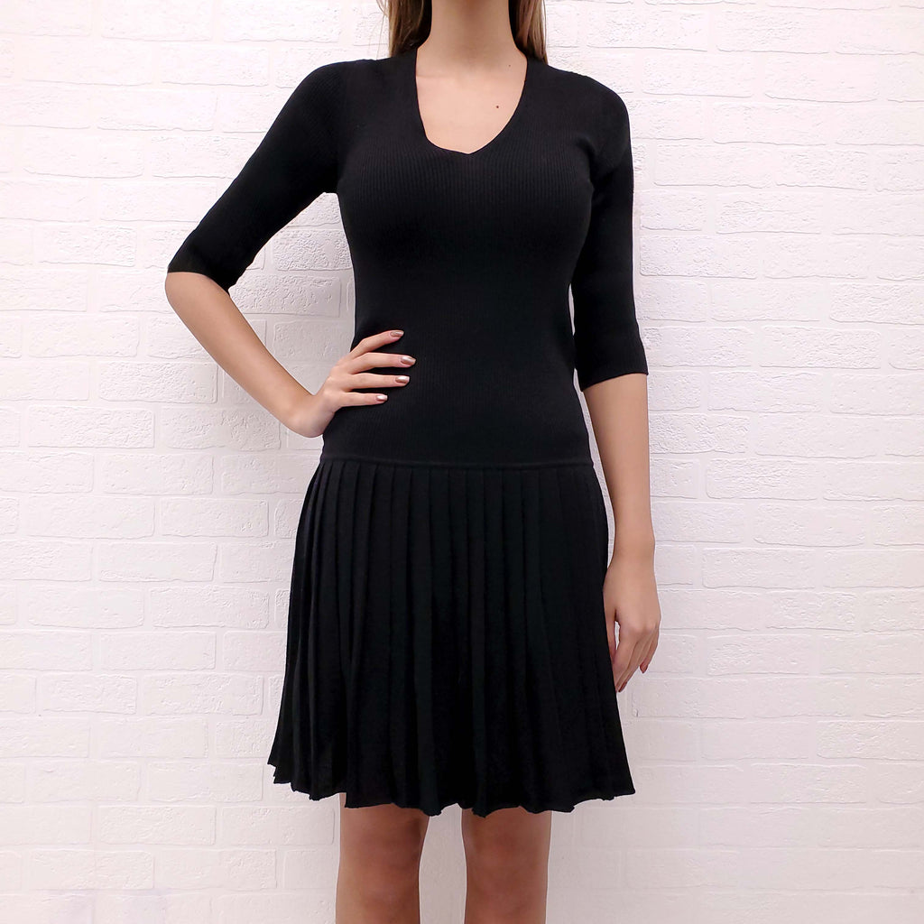 PRADA BLACK KNIT DRESS WITH PLEATS - SIZE 42
