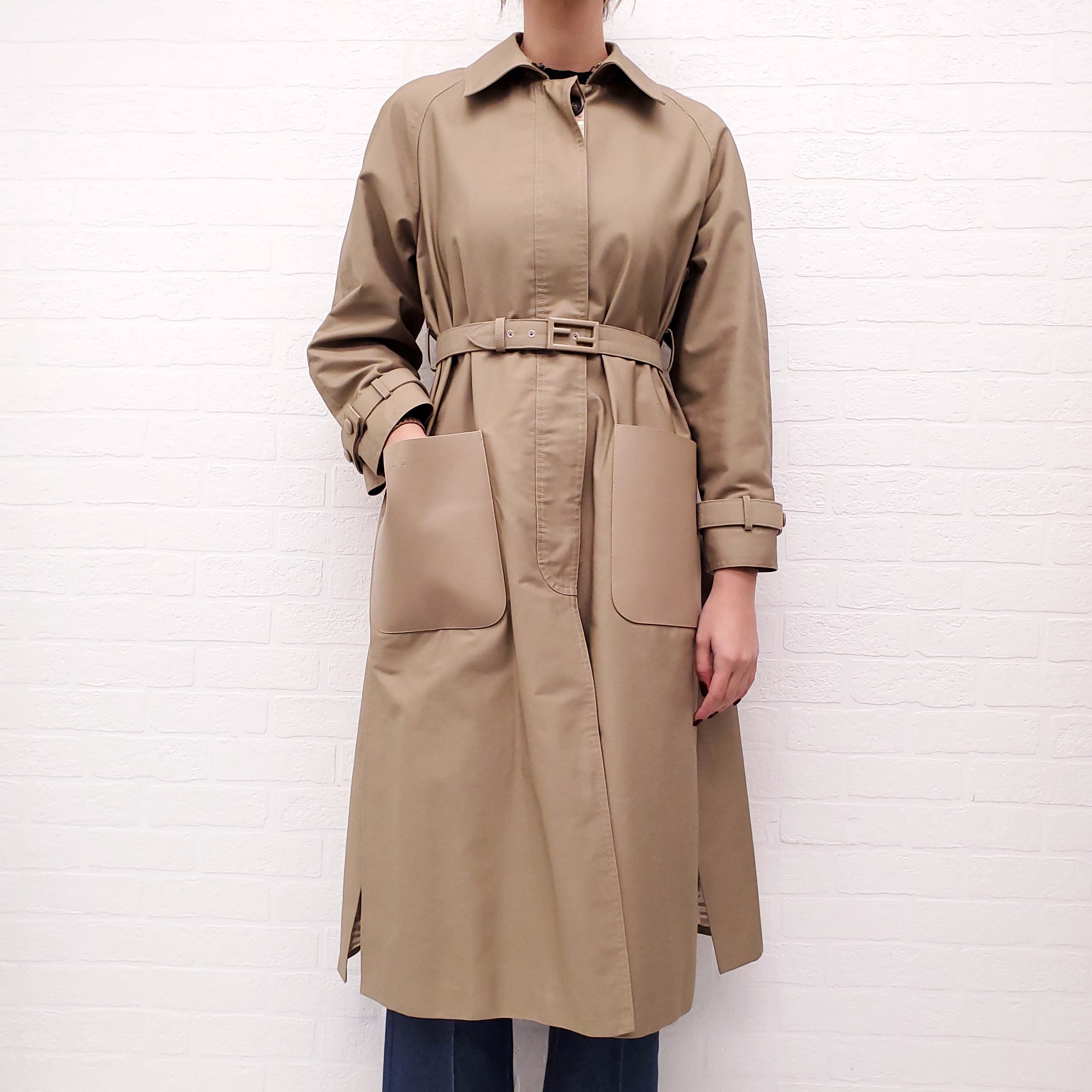 FENDI KHAKI TRENCH COAT WITH LEATHER POCKETS, LOGO INTERIOR AND BELT - SIZE 38