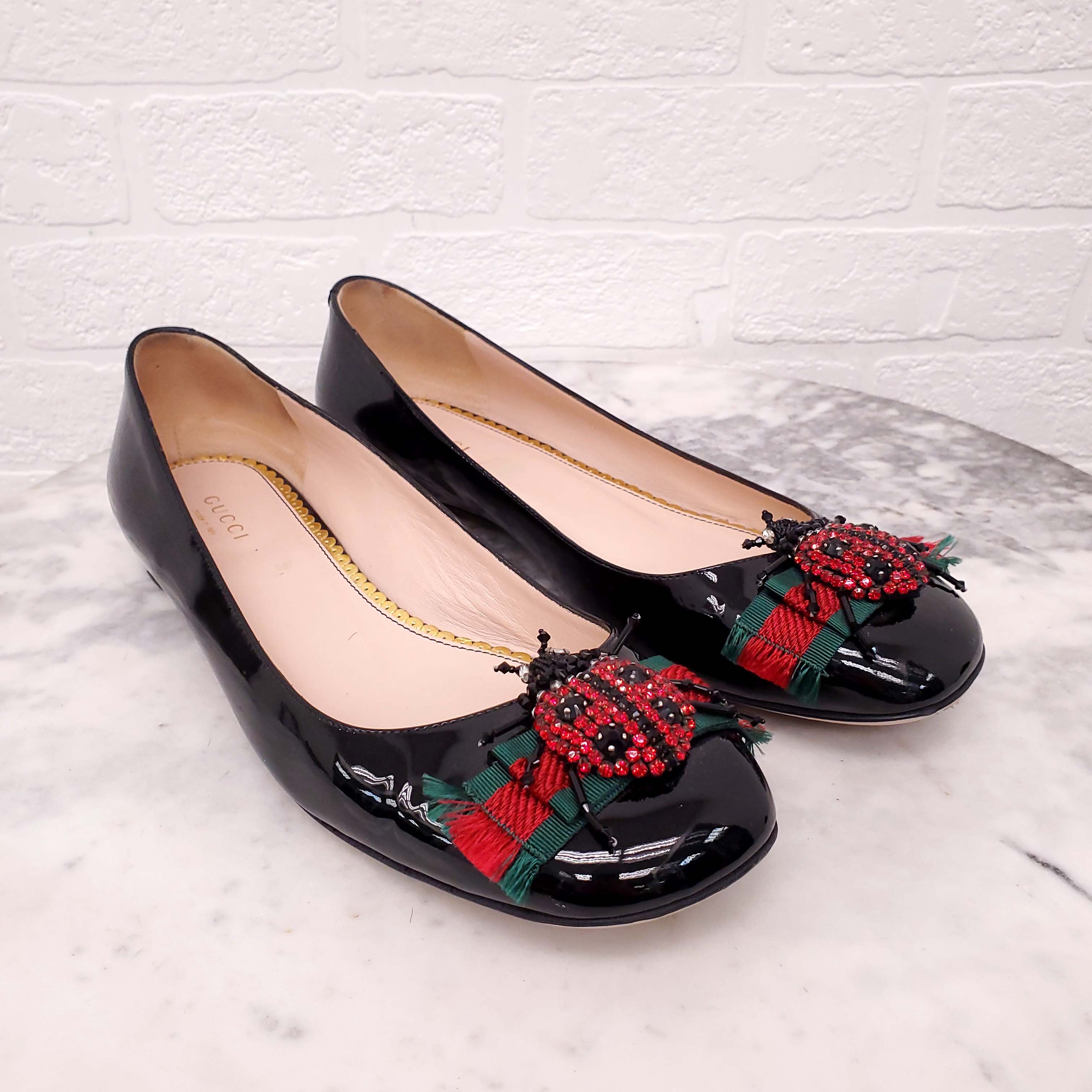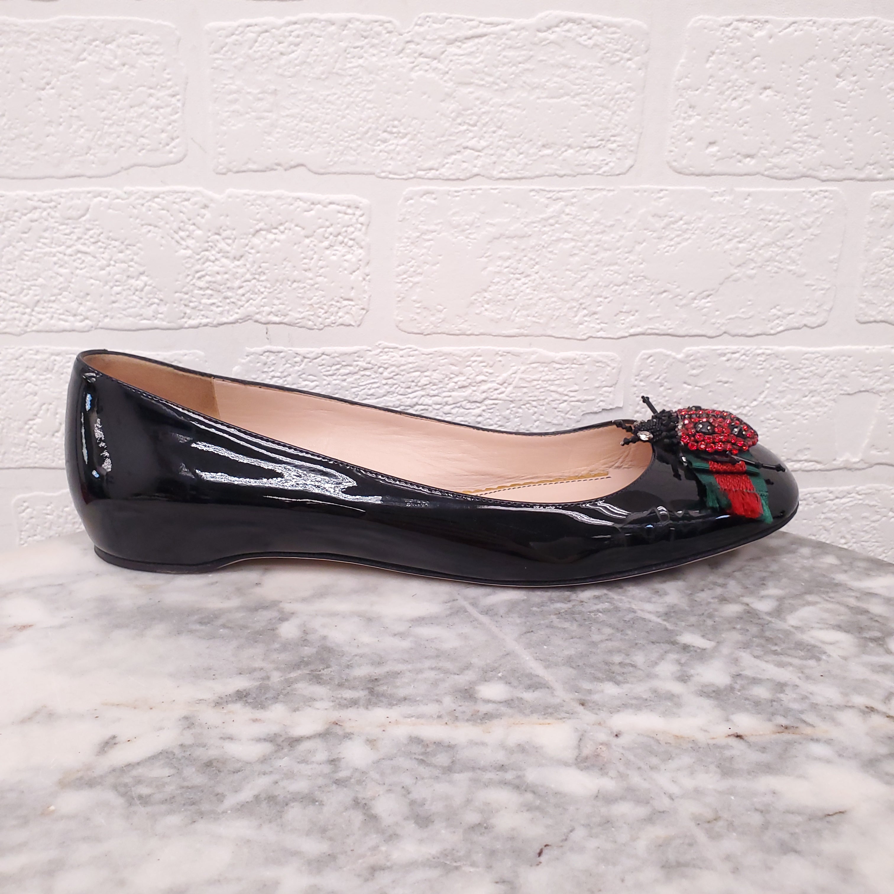 GUCCI LADYBUG PATENT CRYSTAL FLATS - SIZE 40