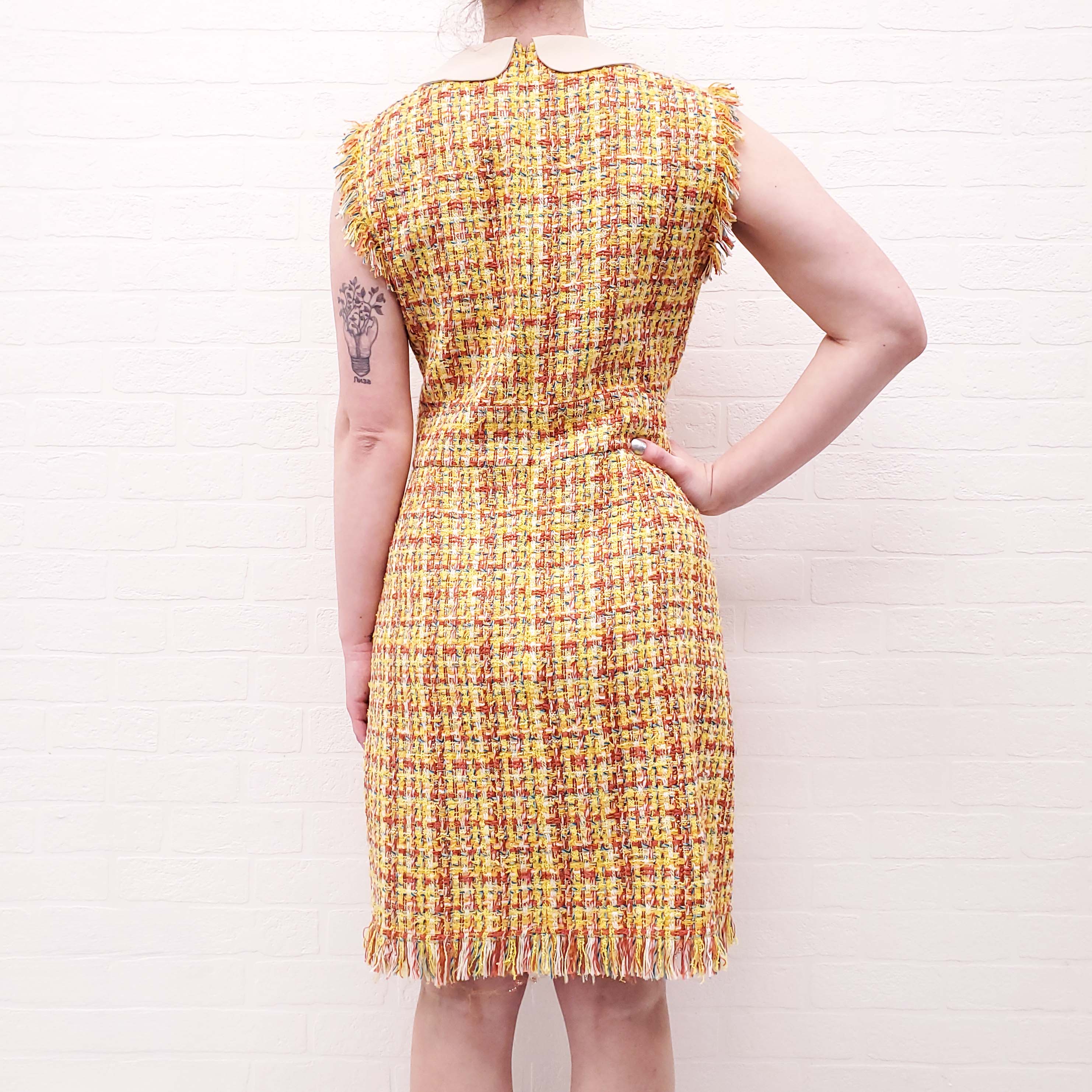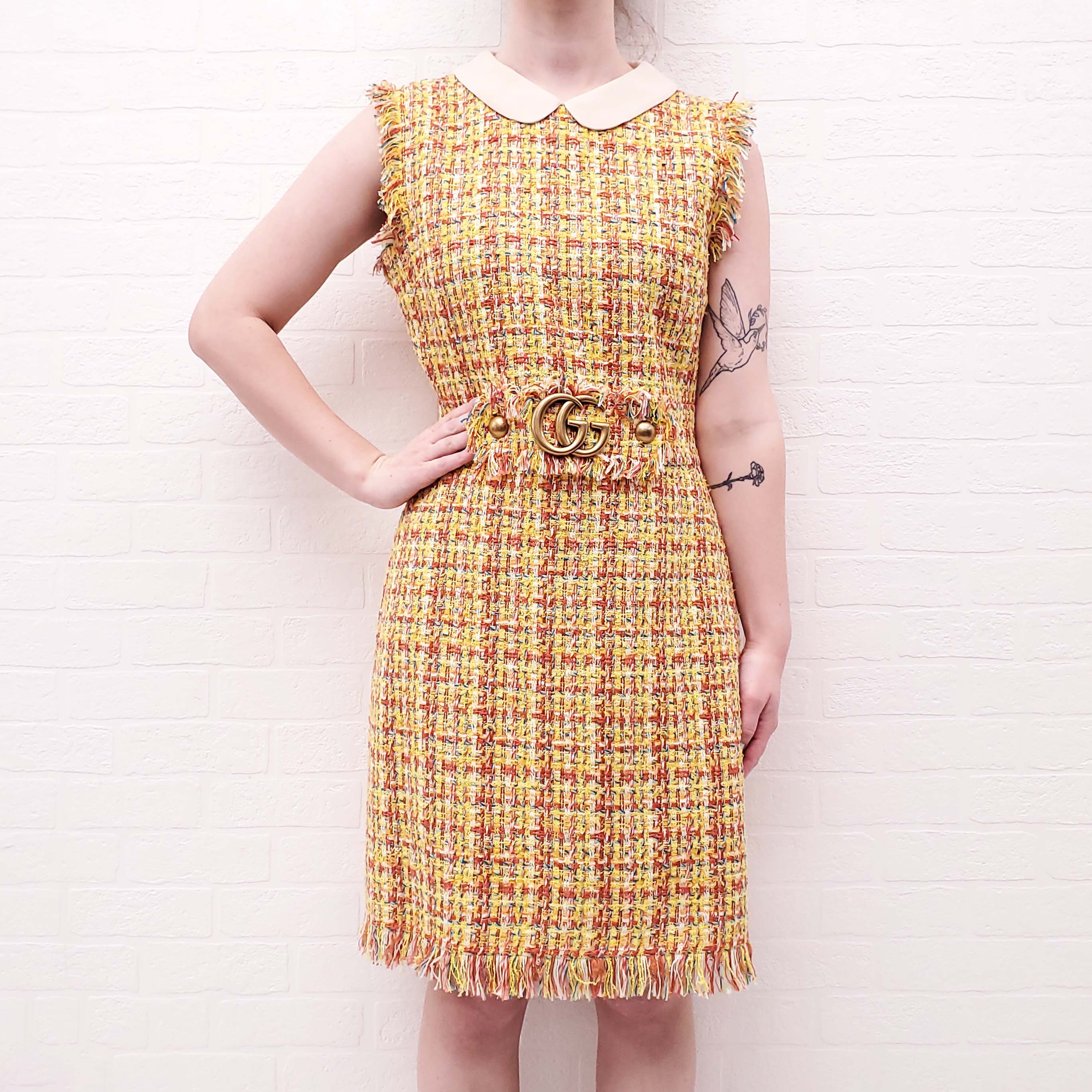 GUCCI YELLOW TWEED DRESS GG BELT - SIZE 44