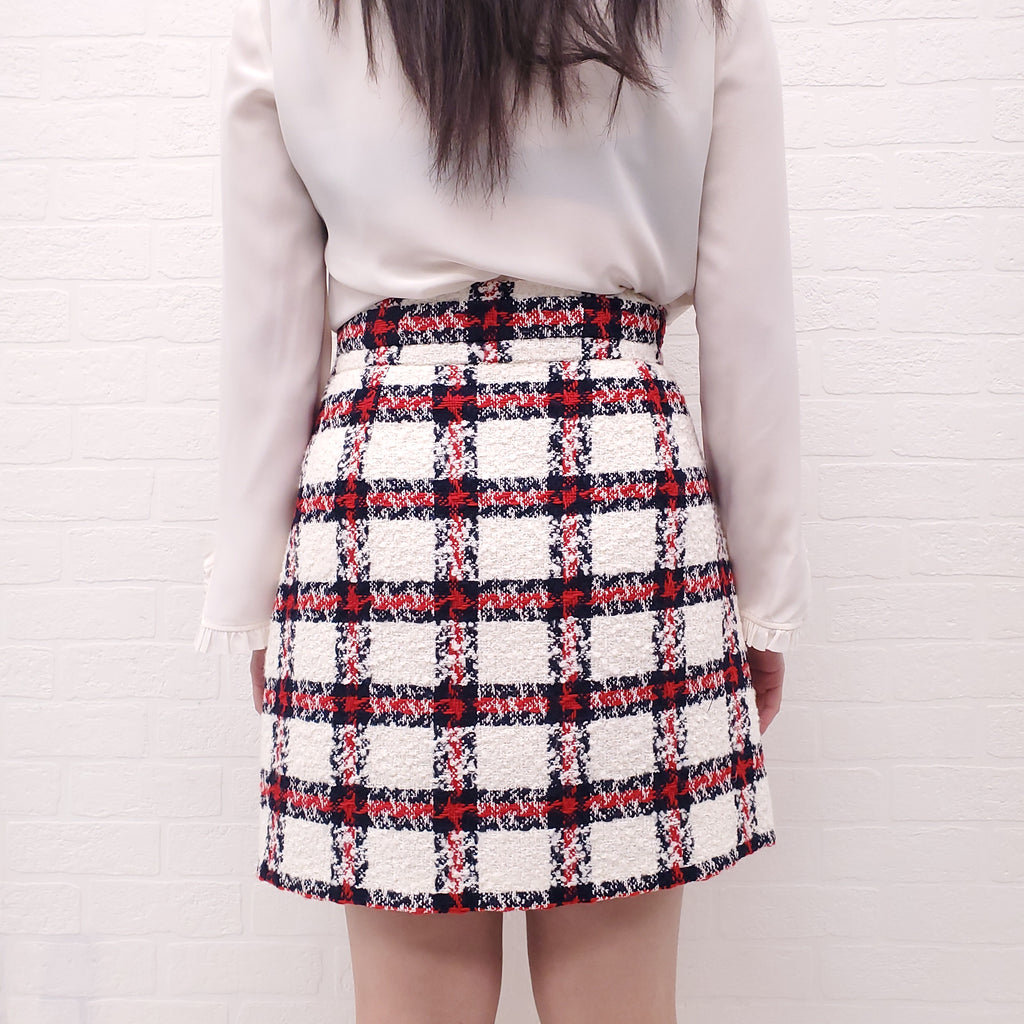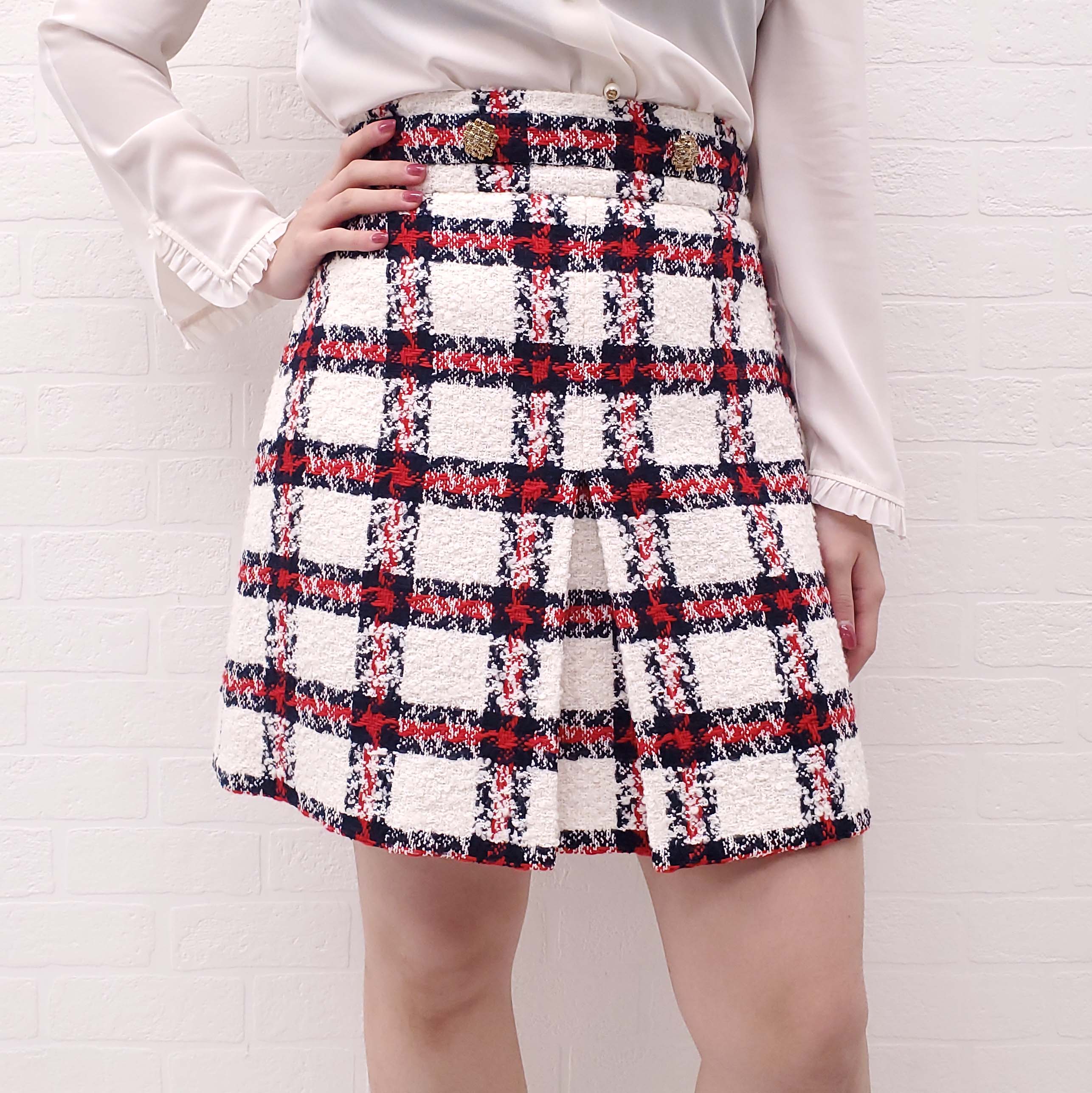 GUCCI CREAM, NAVY AND RED PLAID TWEED SKIRT - SIZE 38