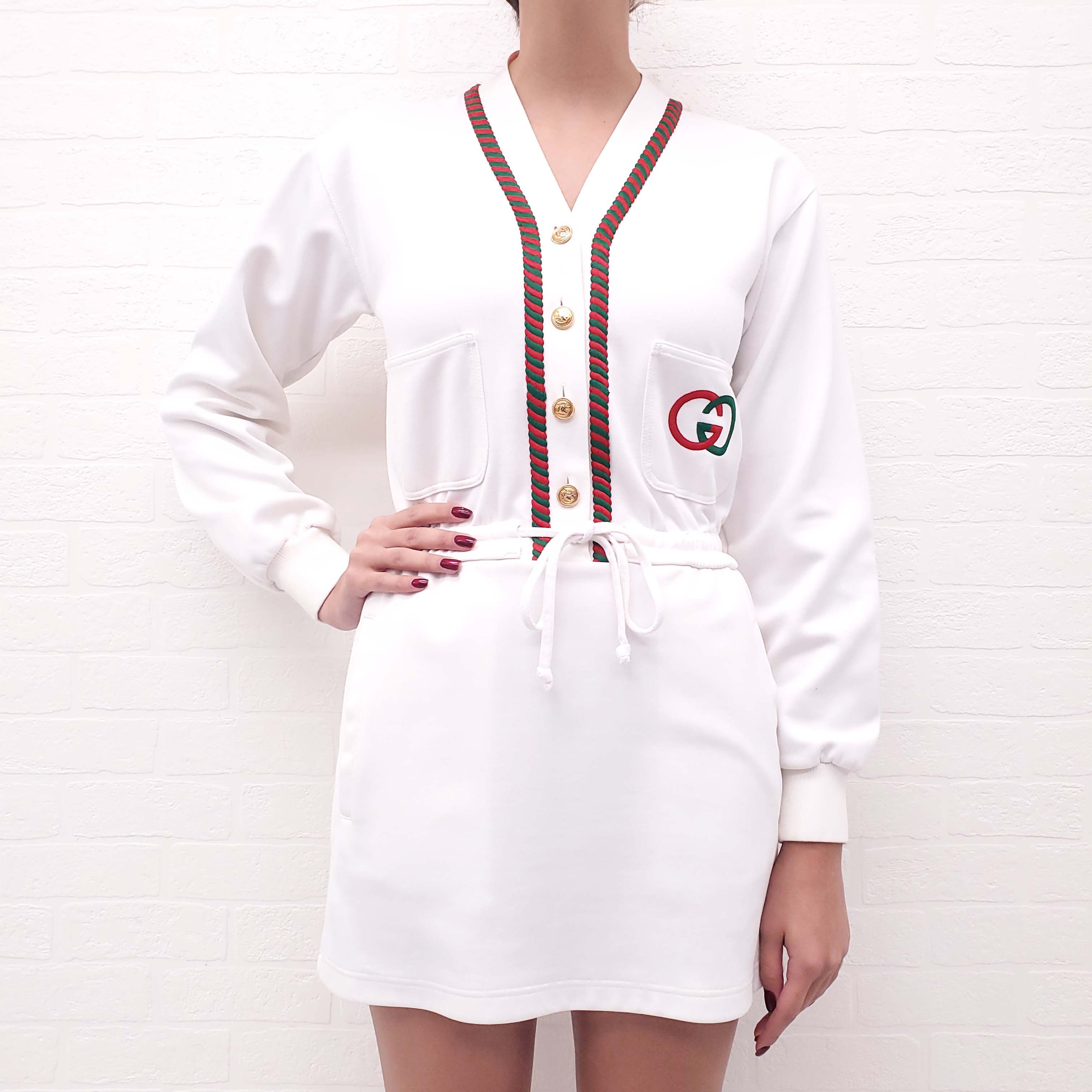 GUCCI WHITE DRESS WITH RED AND GREEN LOGO - SIZE XS