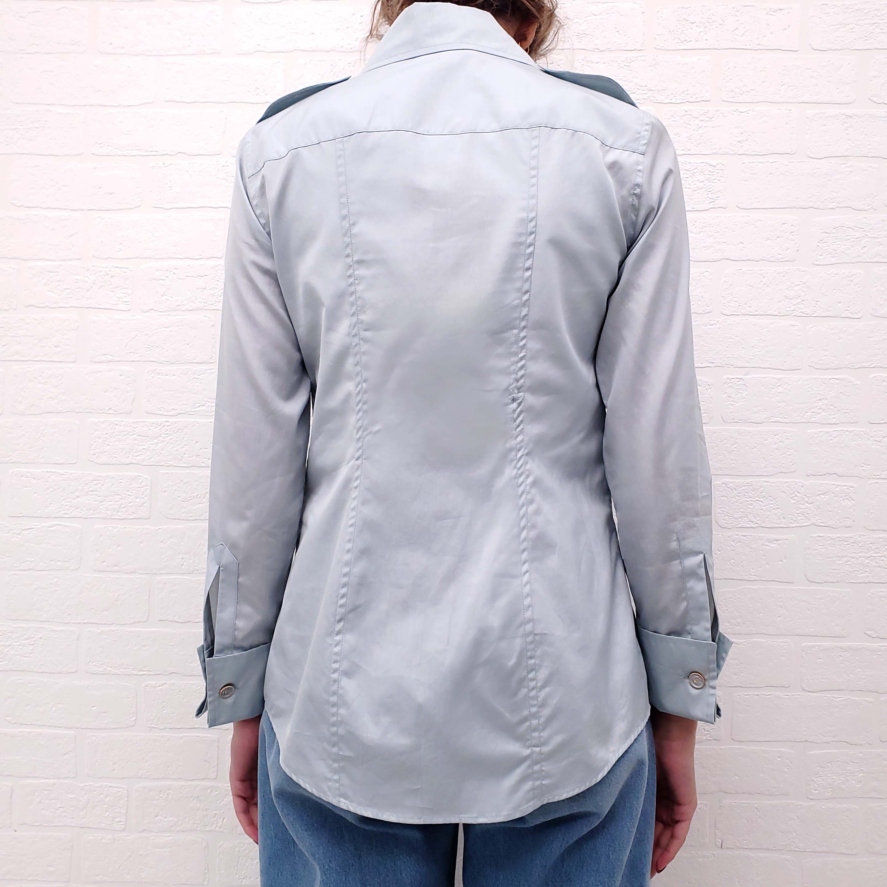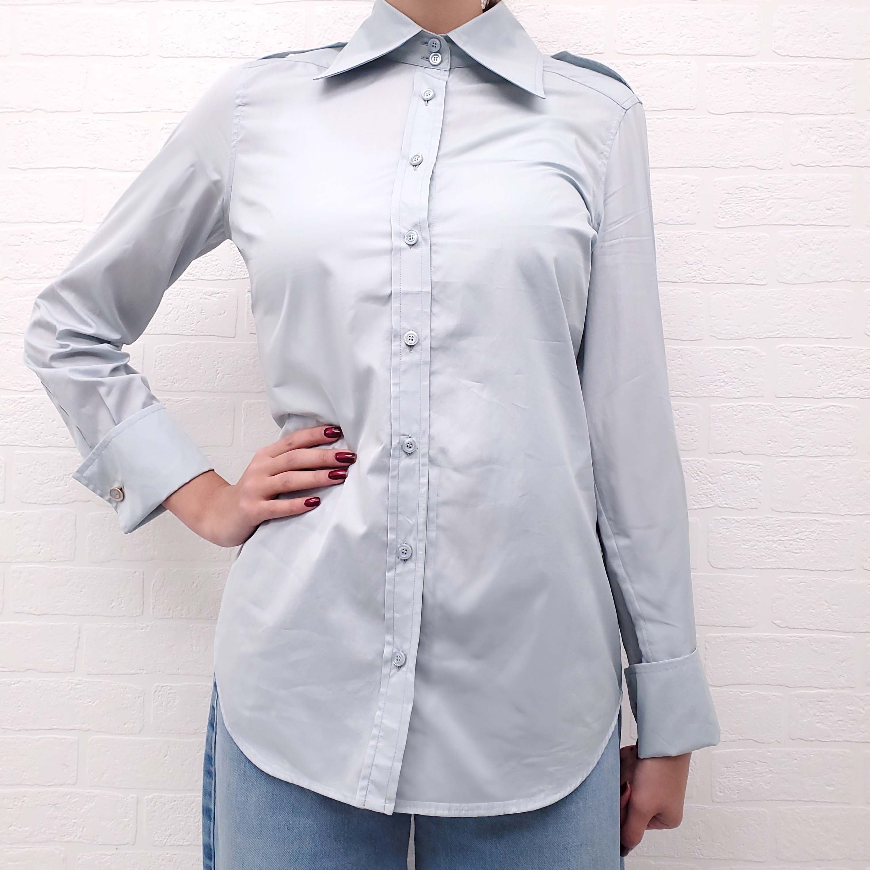 GUCCI PALE BLUE COTTON BUTTON UP BLOUSE WITH LOGO CUFF LINKS - SIZE 38