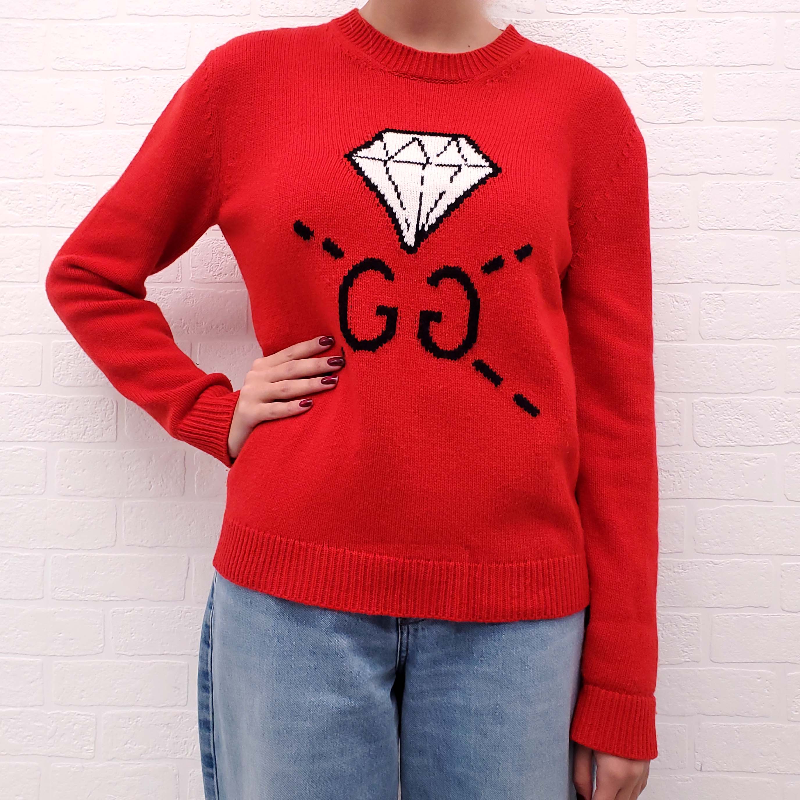 GUCCI RED LOGO DIAMOND SWEATER - SIZE S