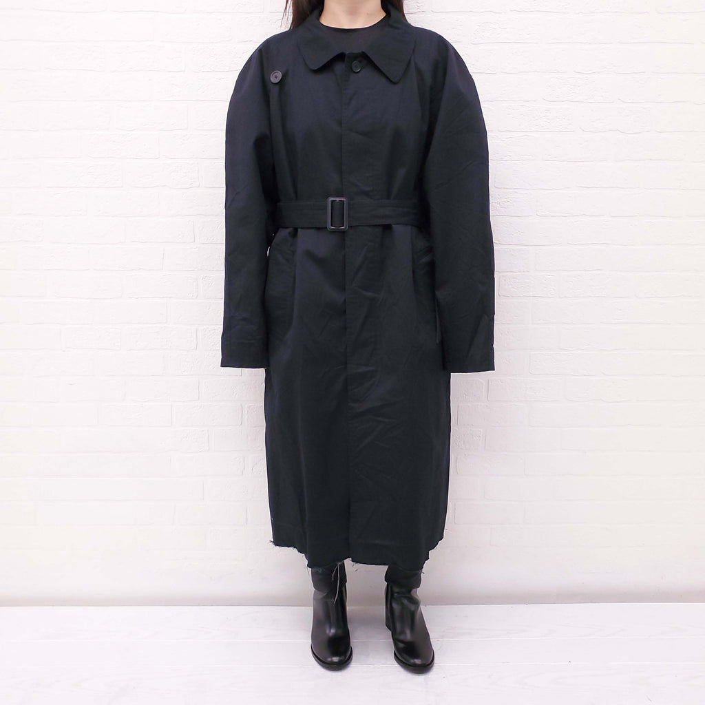 BALENCIAGA OVERSIZED BLACK CRINKLED TRENCH COAT WITH BELT - SIZE XXS