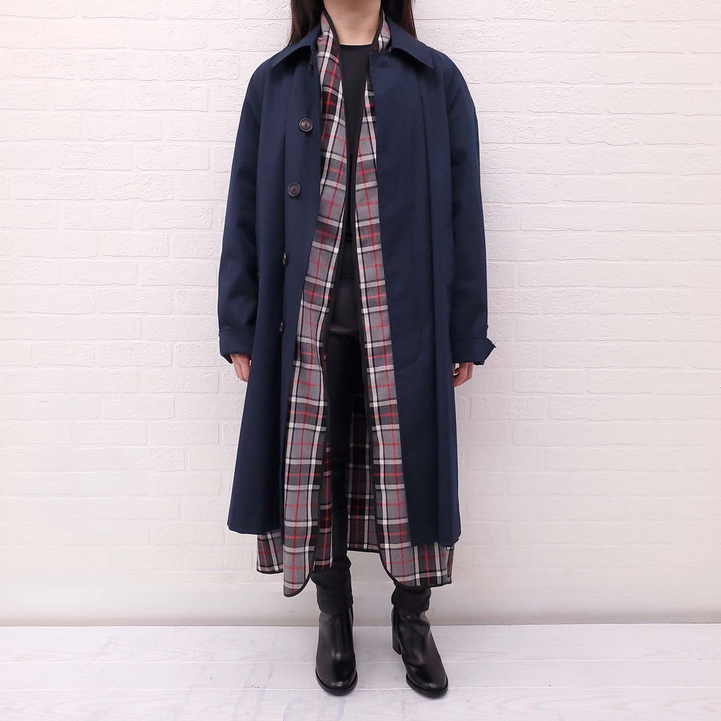 BALENCIAGA OVERSIZED NAVY TRENCH COAT WITH PLAID LINING - SIZE 36