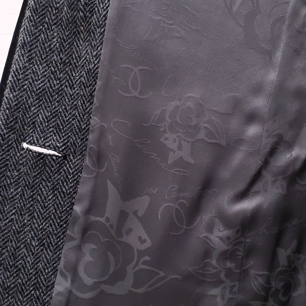 CHANEL GREY HERRINGBONE COAT WITH LOGO BUTTONS - SIZE 42