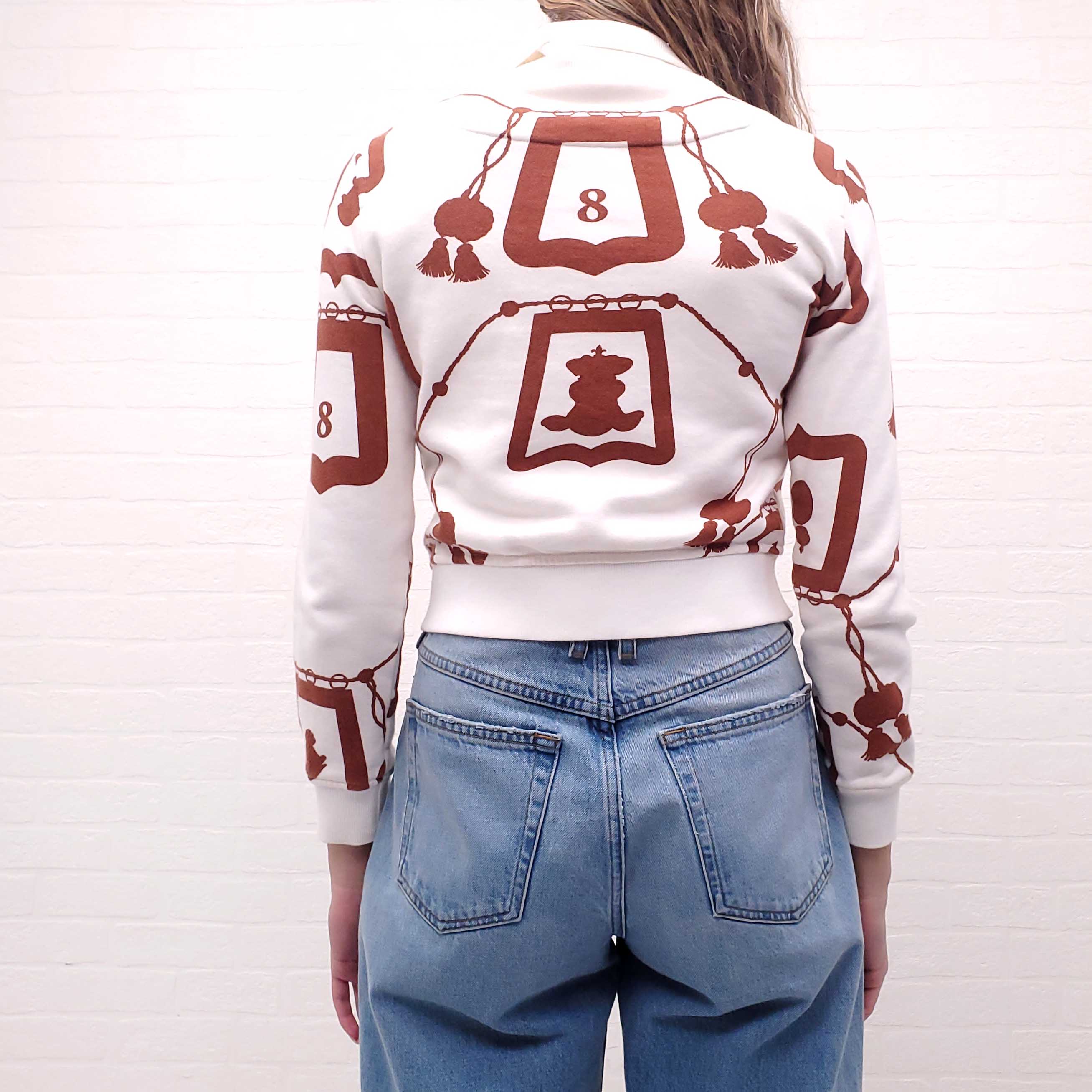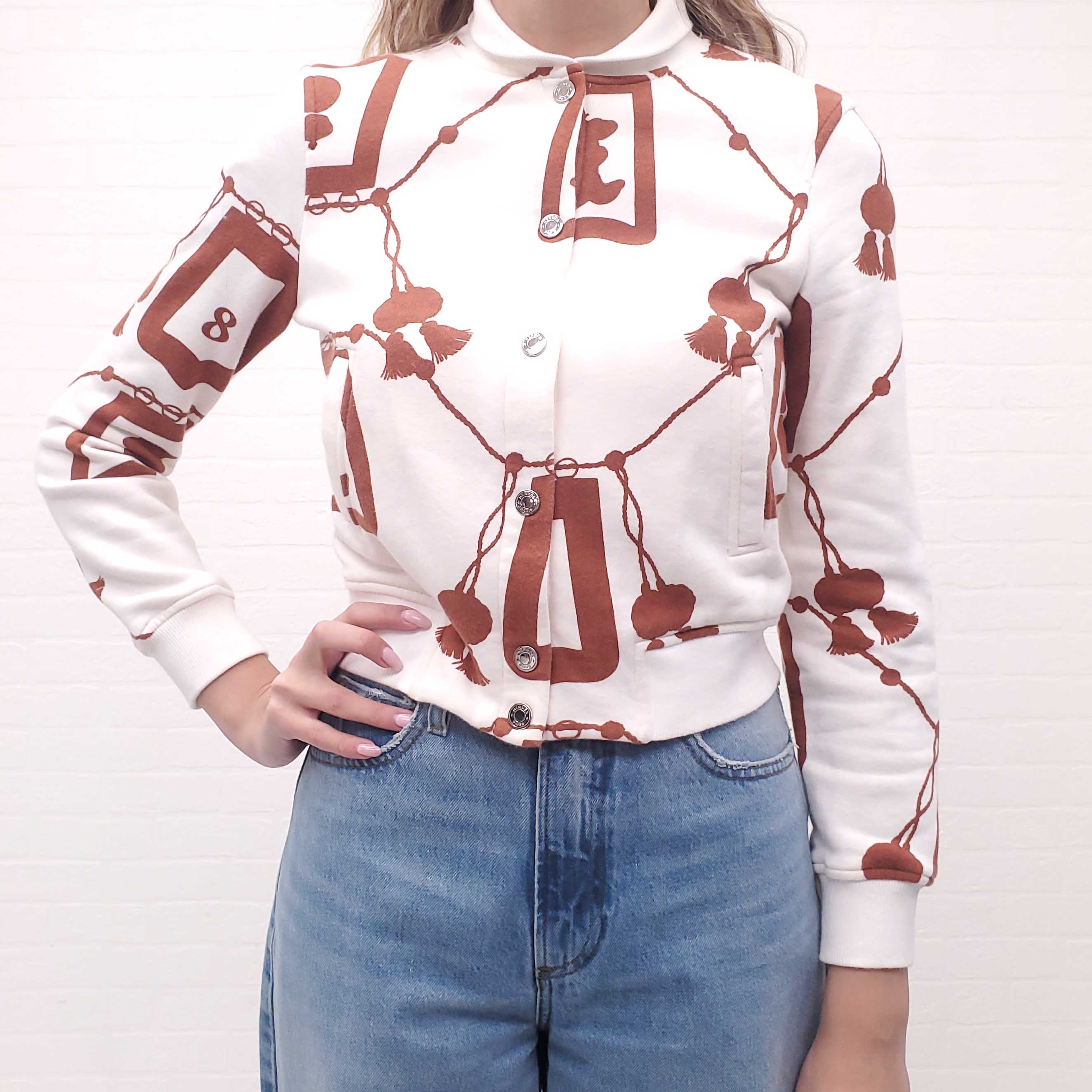 HERMÈS BROWN LOGO SWEATSHIRT BOMBER JACKET - SIZE 34