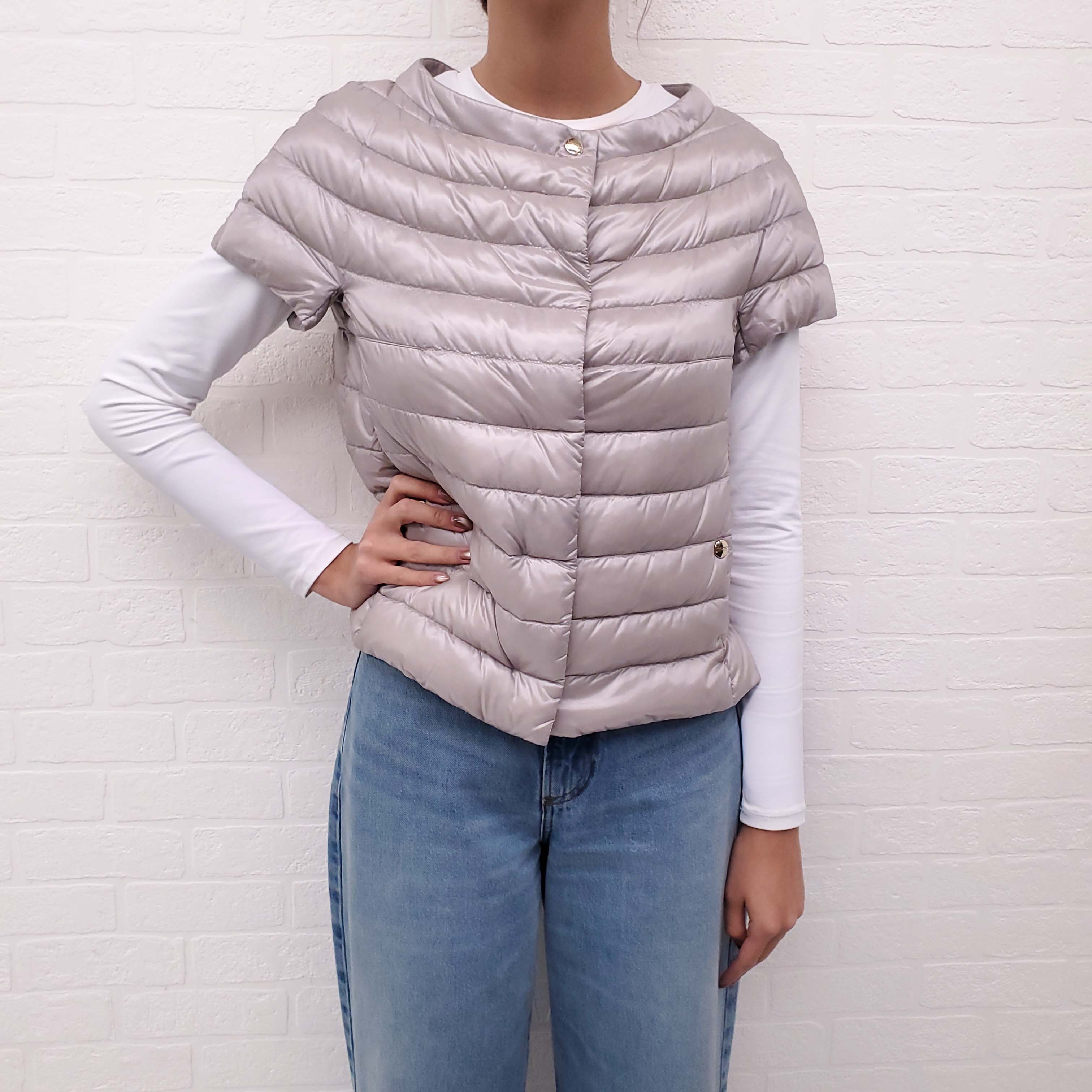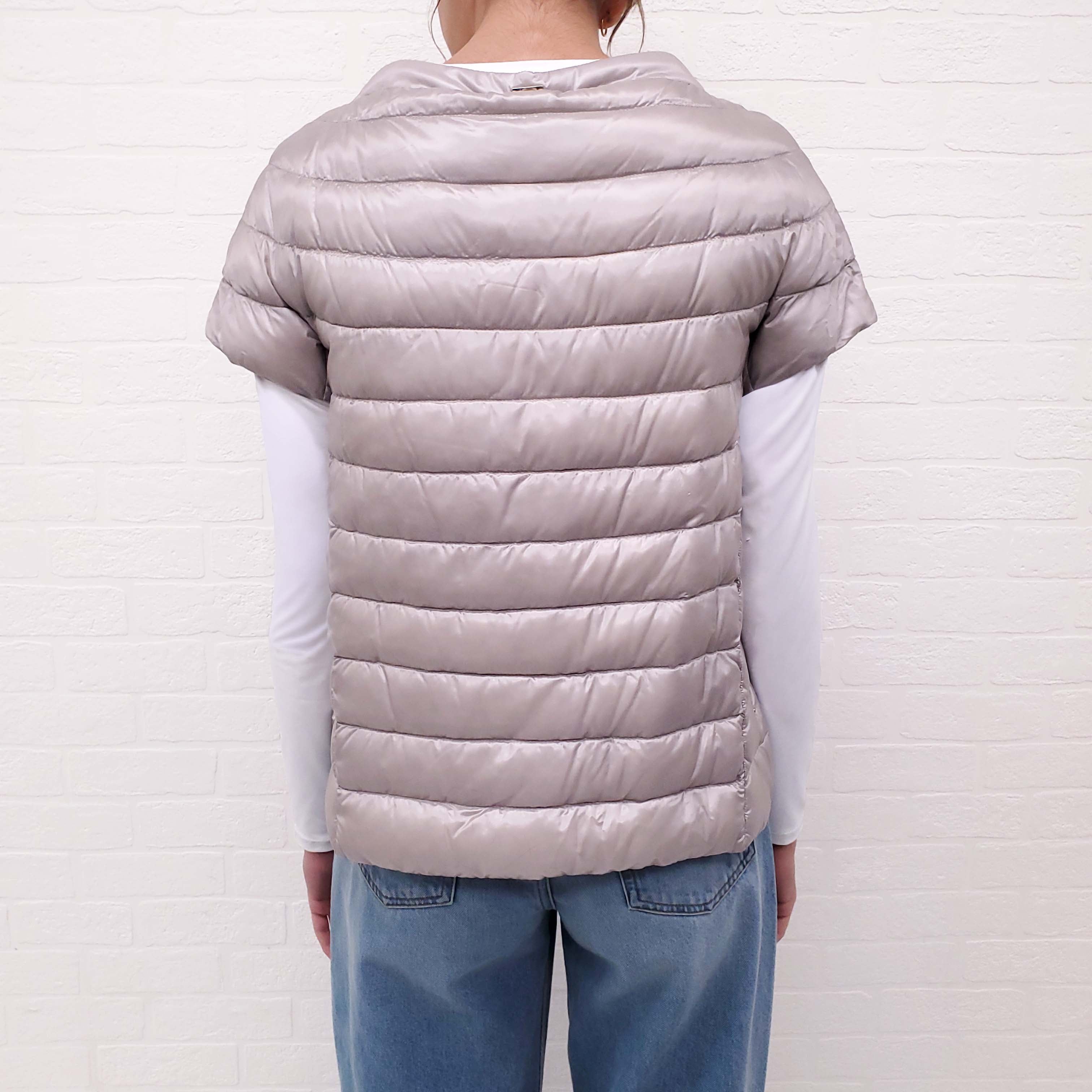 HERNO BEIGE SHORT SLEEVE PUFFER JACKET - SIZE 42