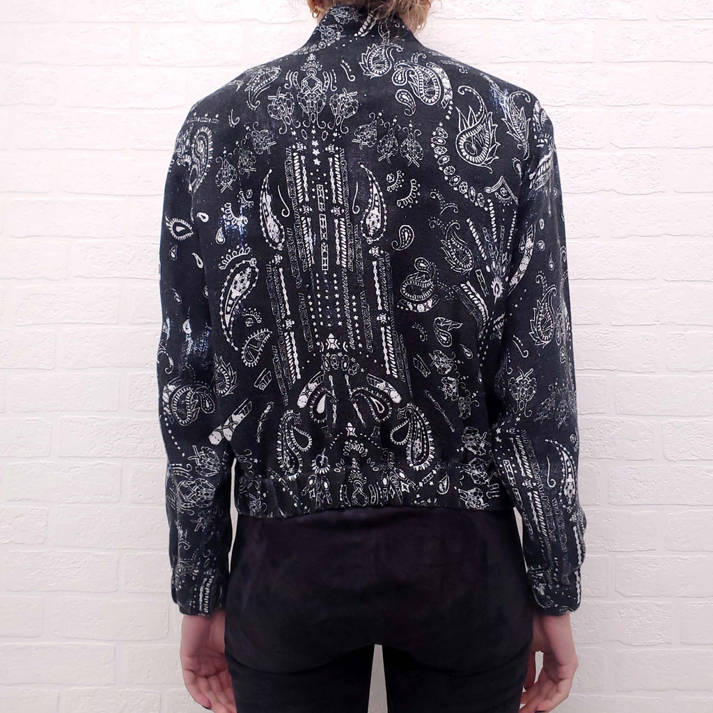 IRO JEANS OVERSIZED BLACK PAISLEY LINEN JACKET - SIZE 34