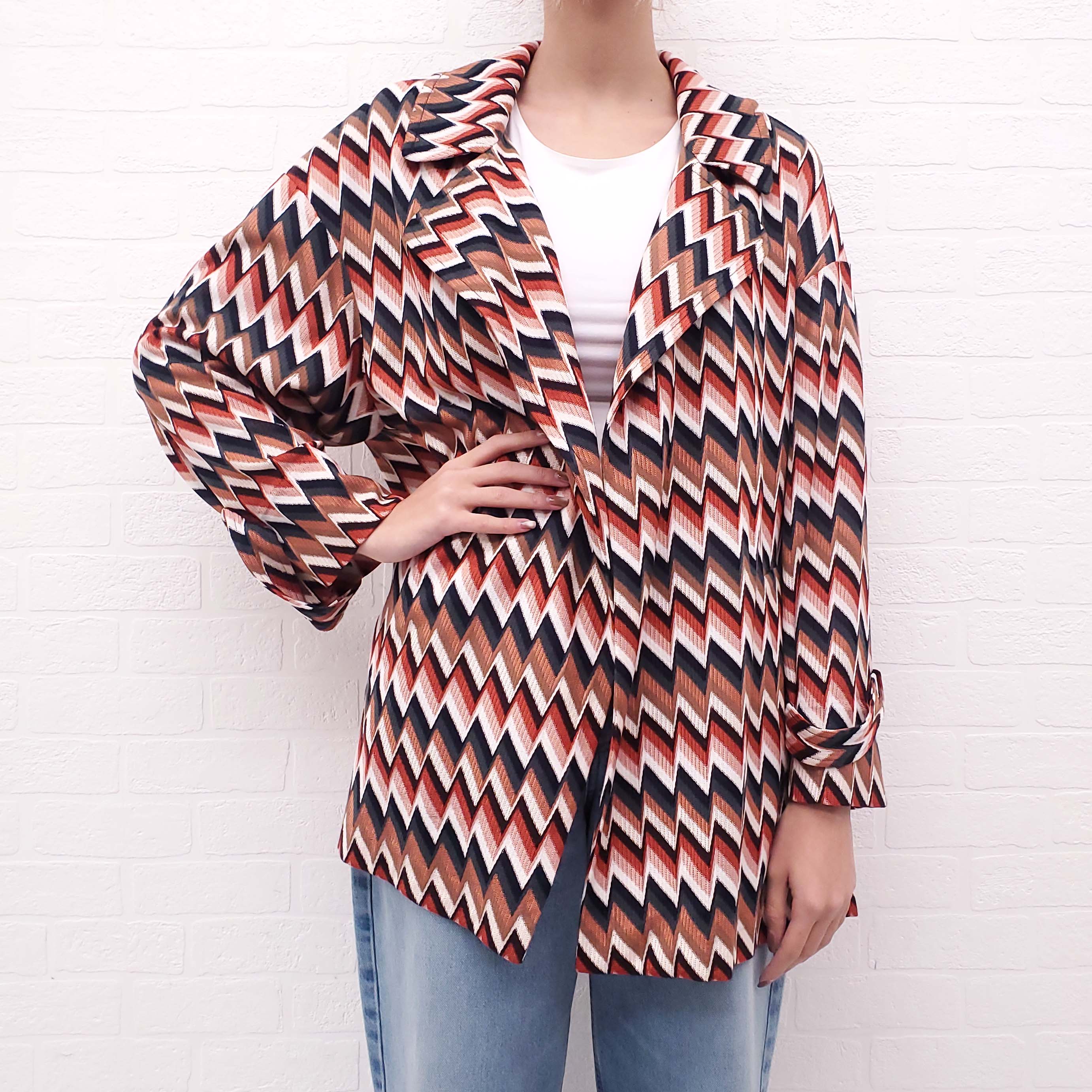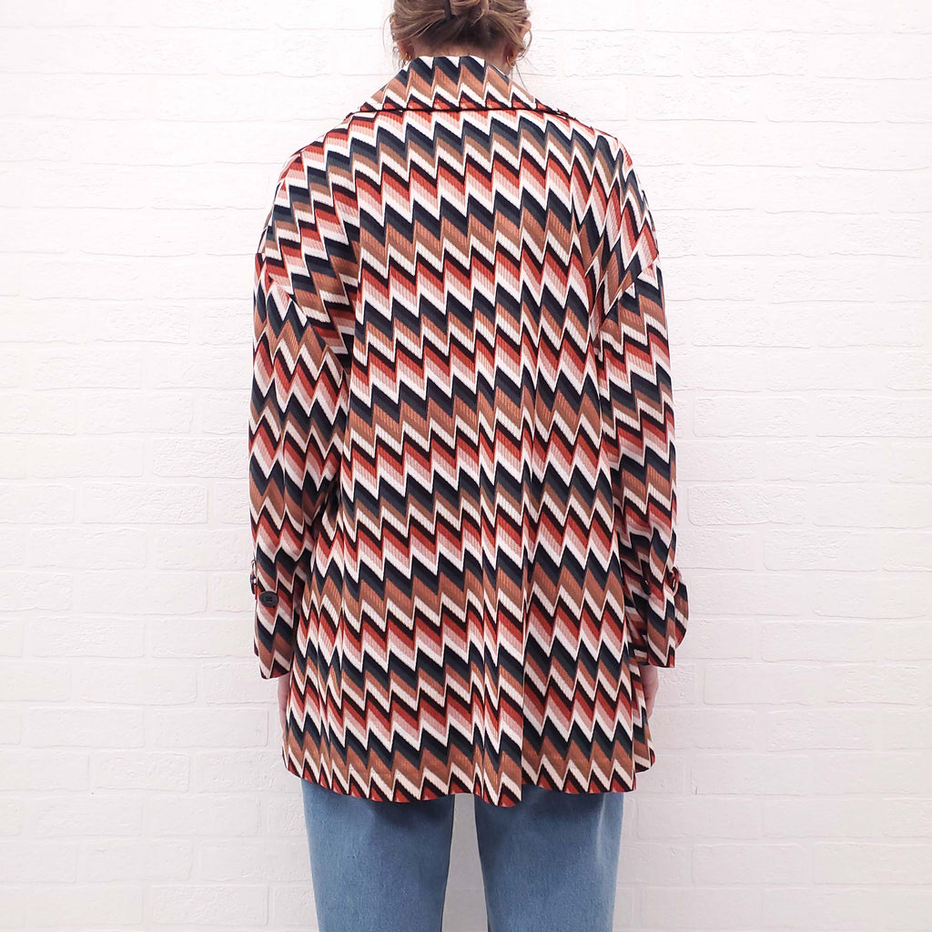 MISSONI BROWN AND ORANGE ZIG ZAG PATTERNED KNIT JACKET - SIZE 42