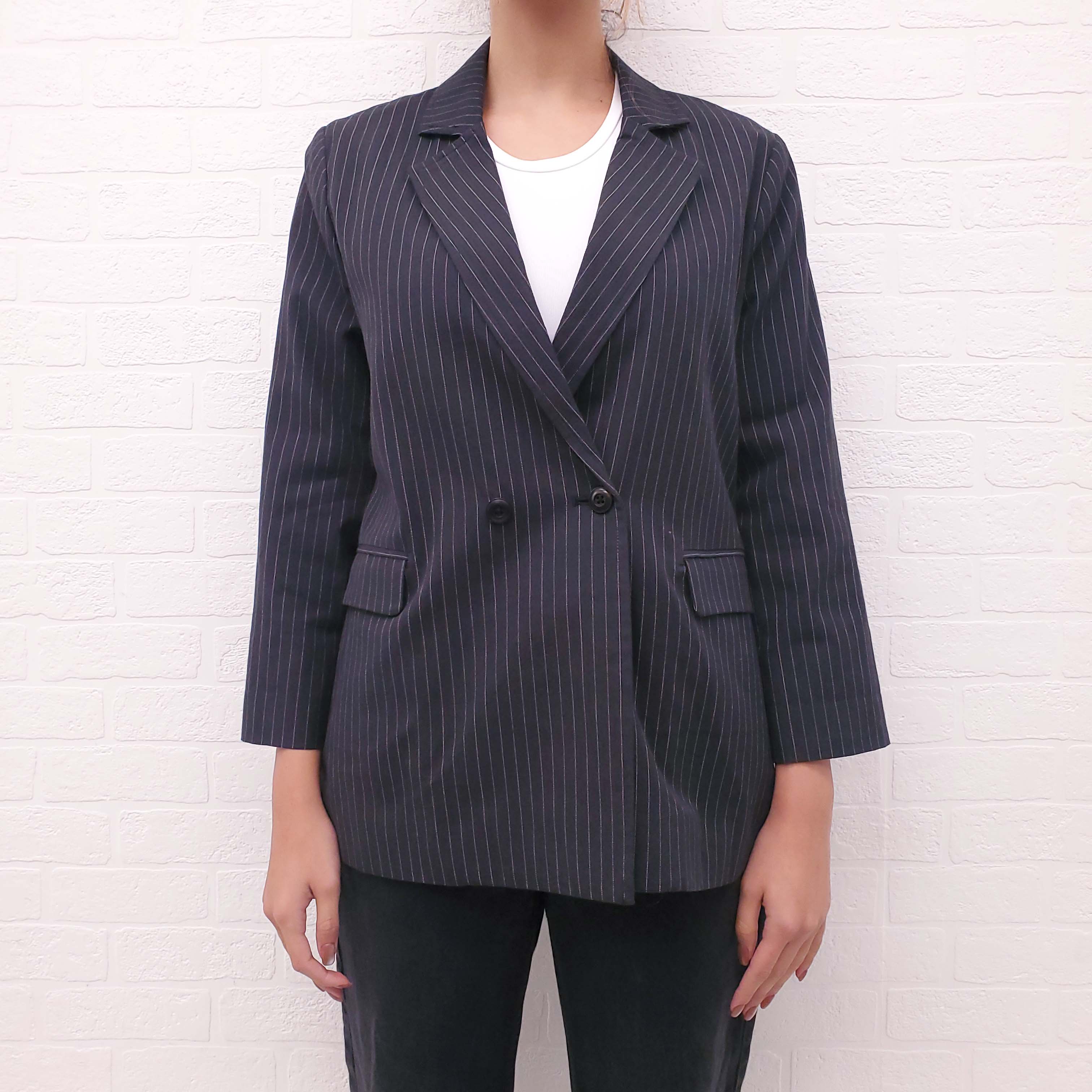 THE GREAT BLACK PINSTRIPE BLAZER - SIZE 0/XS