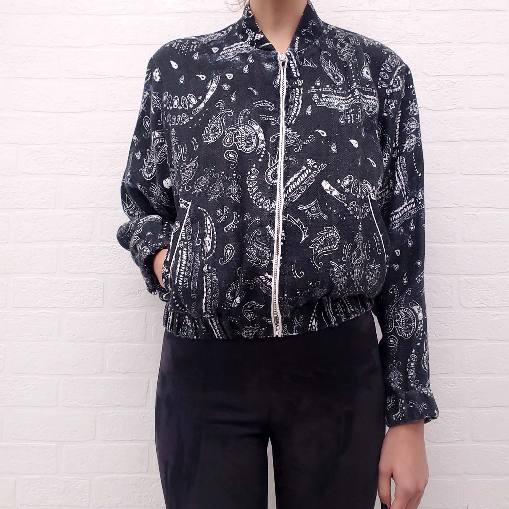 IRO JEANS OVERSIZED BLACK PAISLEY LINEN JACKET - SIZE 34