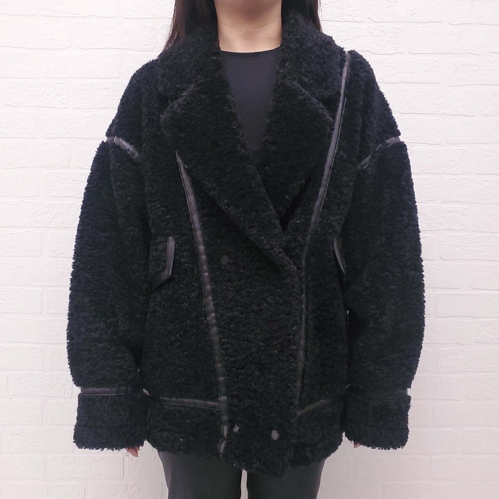 LAMARQUE BLACK FAUX SHEARLING JACKET - SIZE L