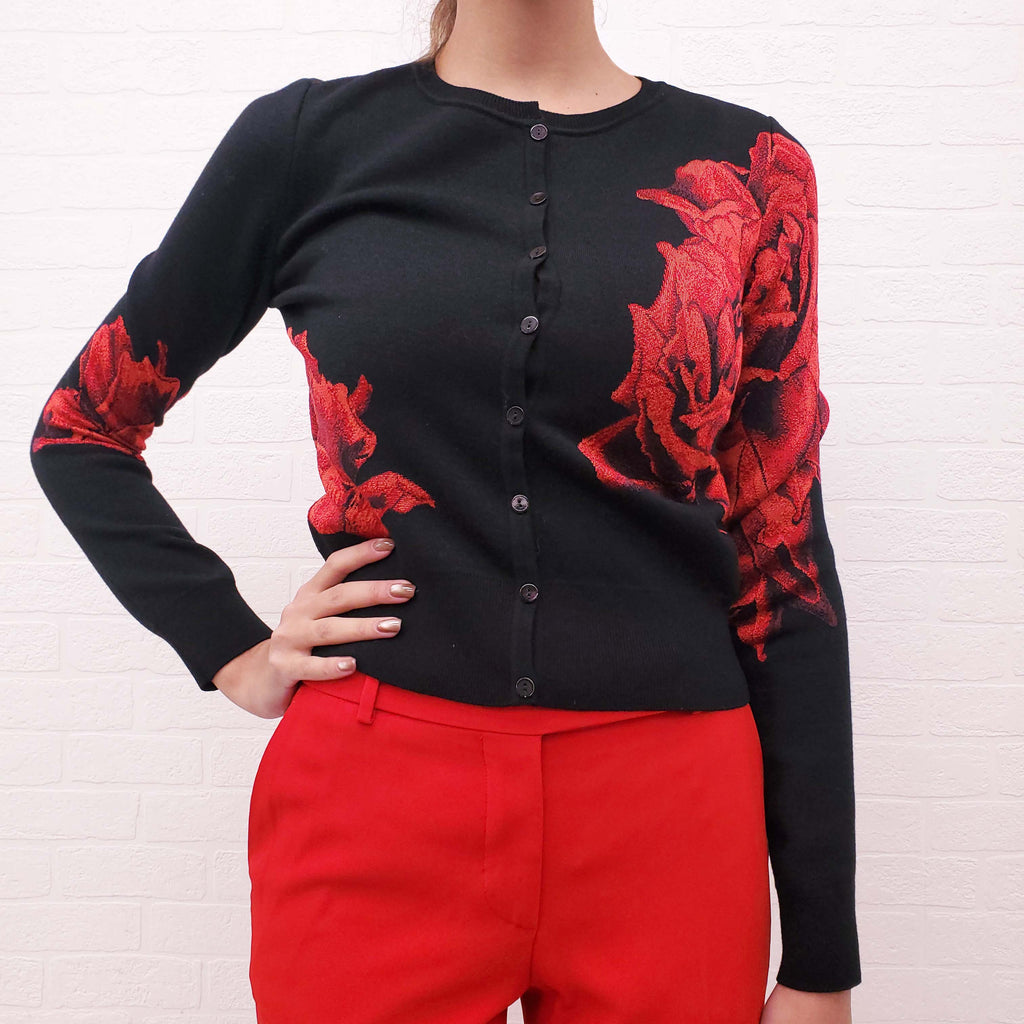 ALEXANDER MCQUEEN BLACK AND RED FLORAL CARDIGAN - SIZE S