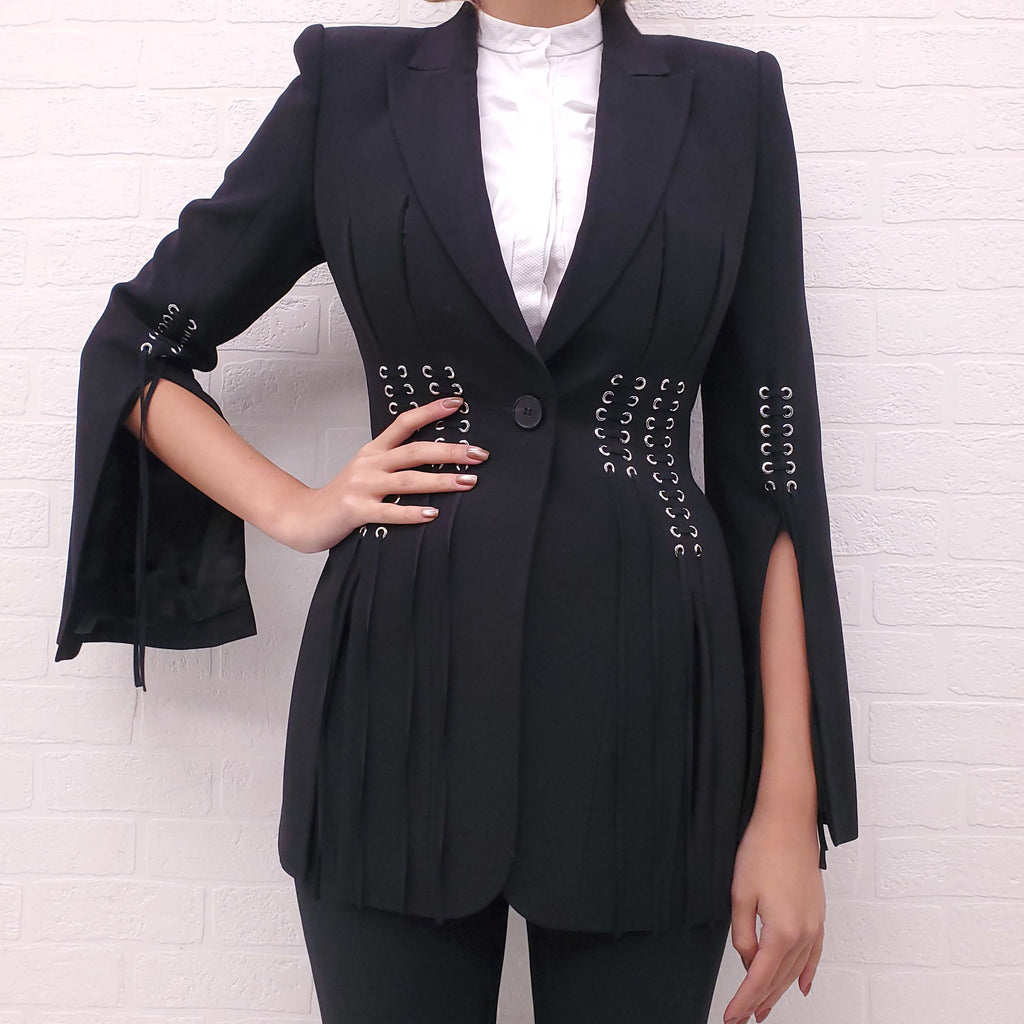 ALEXANDER MCQUEEN BLACK SUIT WITH CORSET DETAIL - SIZE 38