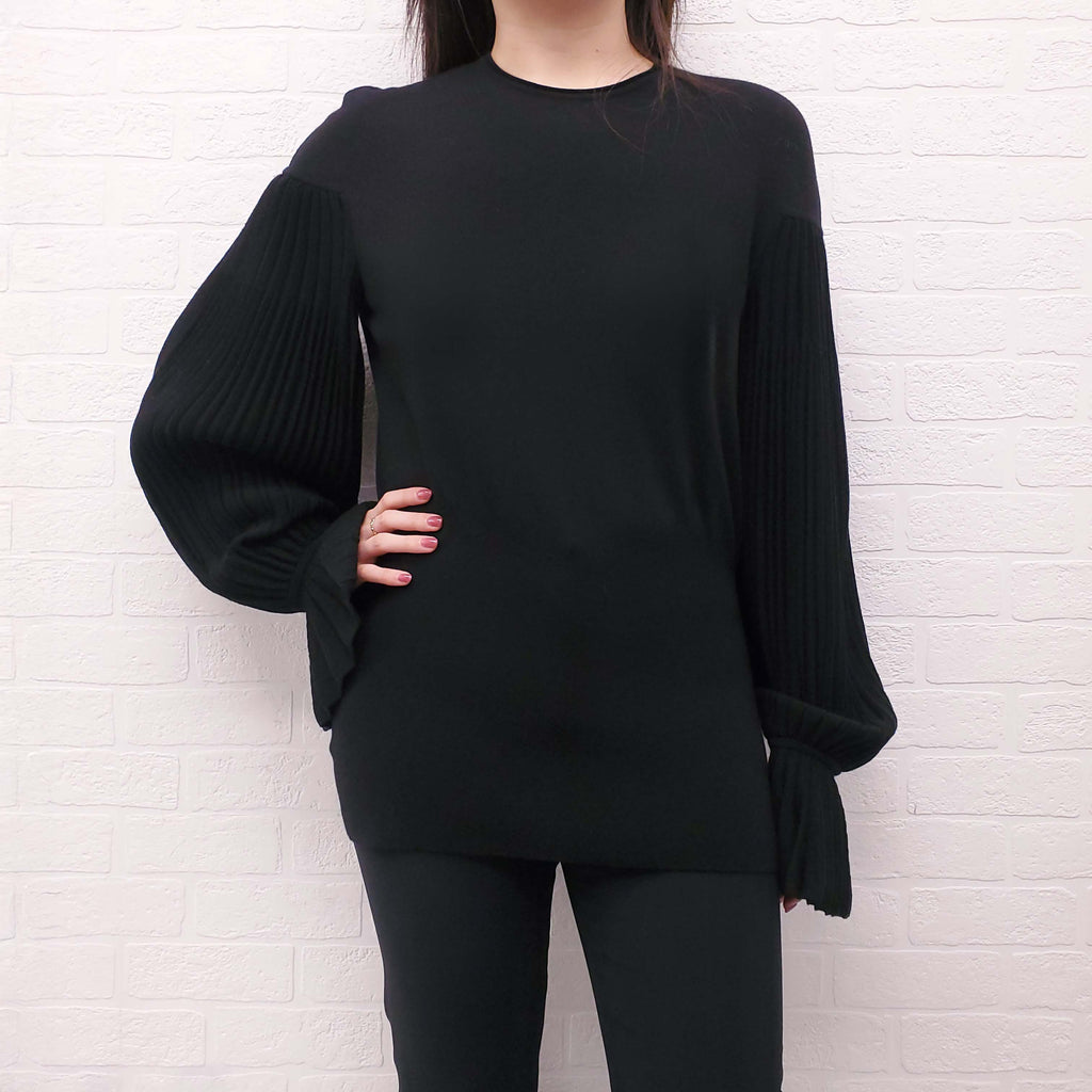 ALEXANDER MCQUEEN BLACK SWEATER WITH PLEATED SLEEVES - SIZE S