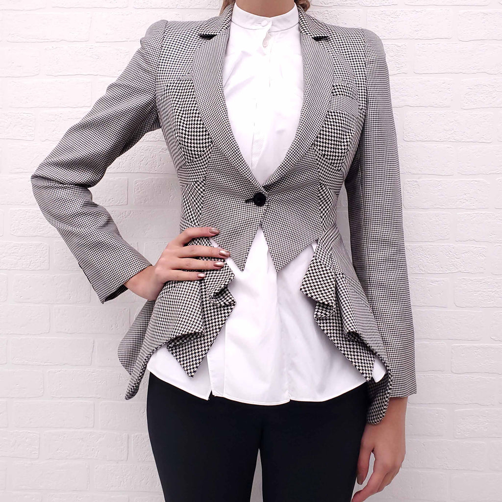 ALEXANDER MCQUEEN PLAID PEPLUM EQUESTRIAN BLAZER - SIZE 38