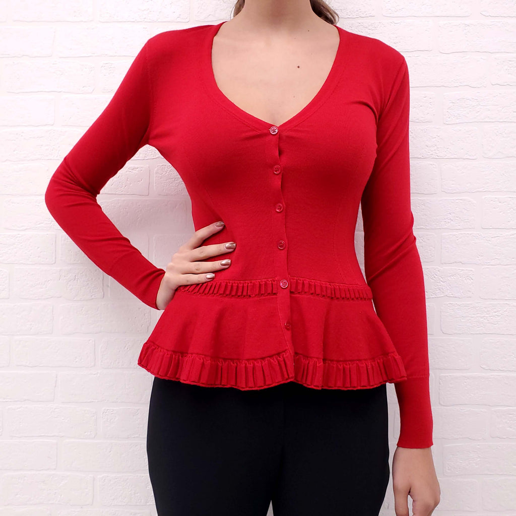 ALEXANDER MCQUEEN RED PEPLUM CARDIGAN - SIZE S