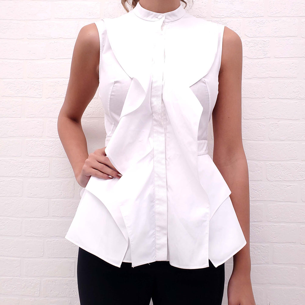 ALEXANDER MCQUEEN WHITE COTTON PEPLUM SLEEVELESS BLOUSE - SIZE 40