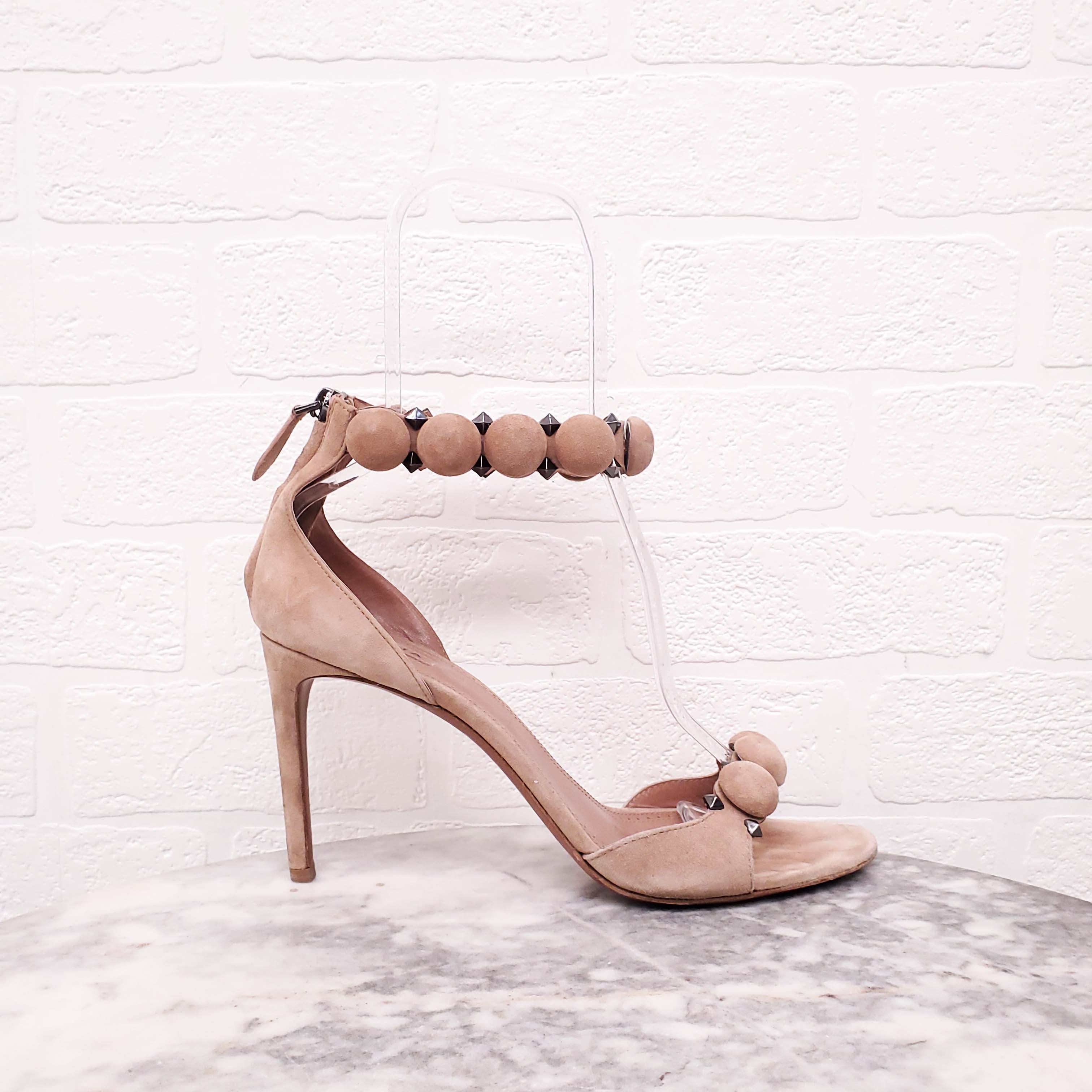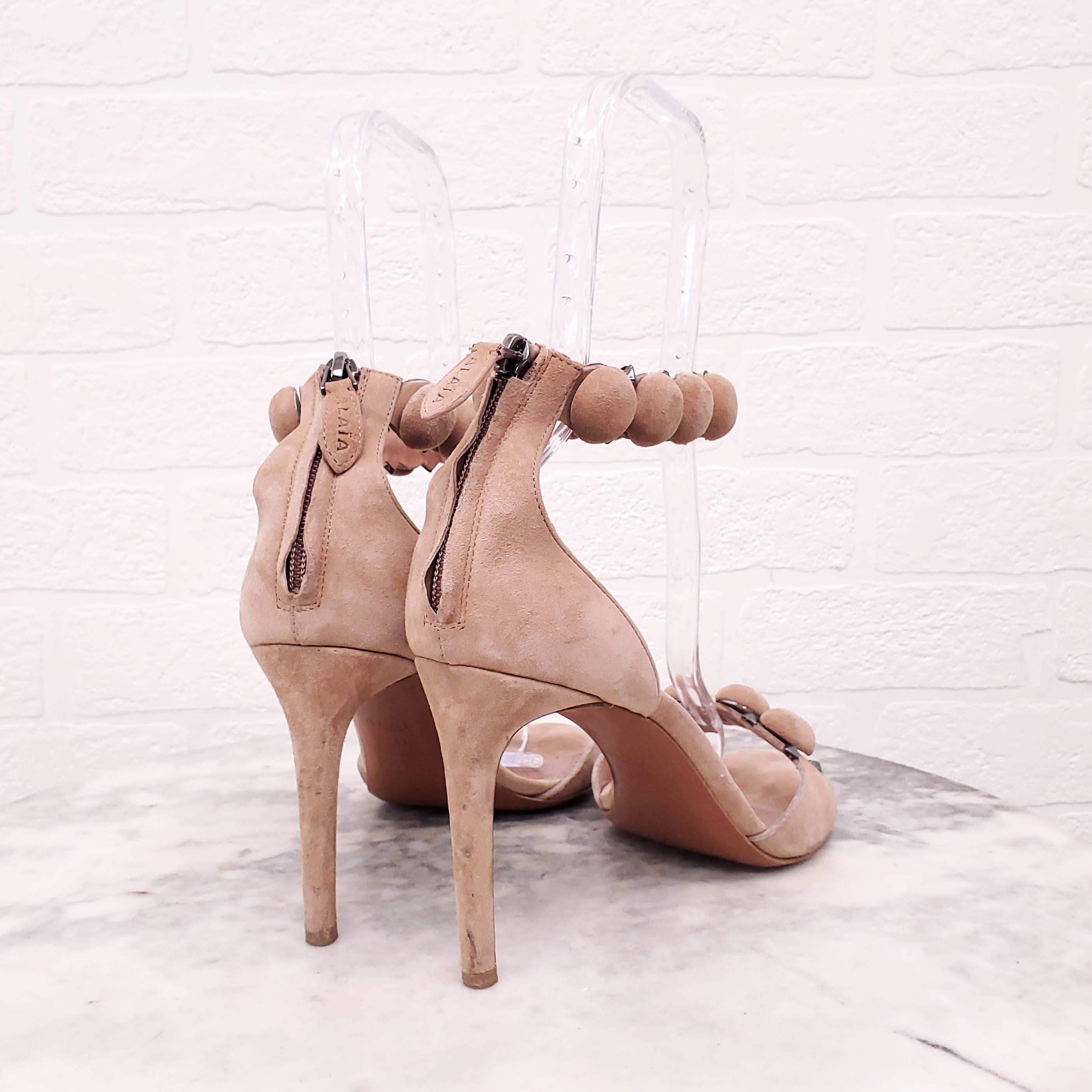 ALAÏA PALE PINK SUEDE 'LA BOMBE' HEELS - SIZE 41