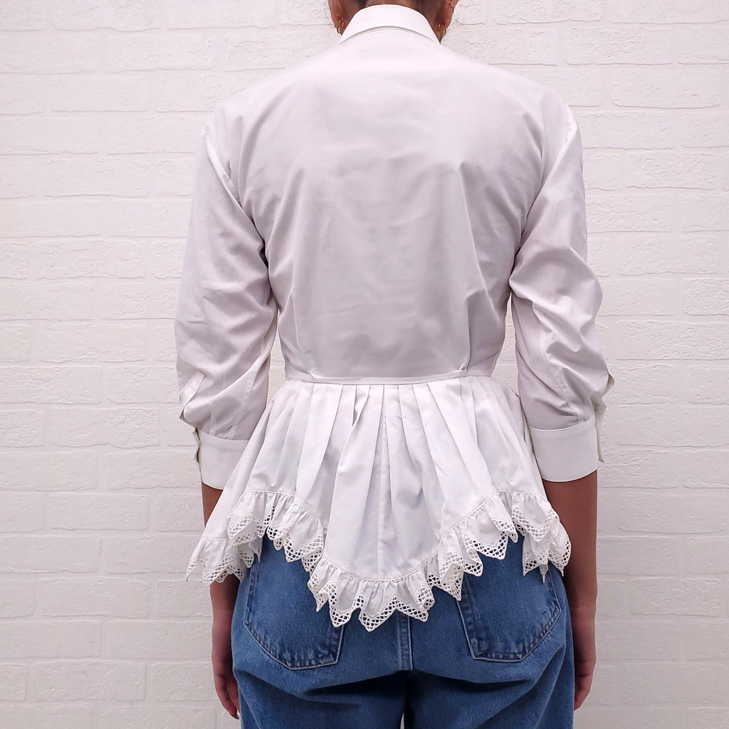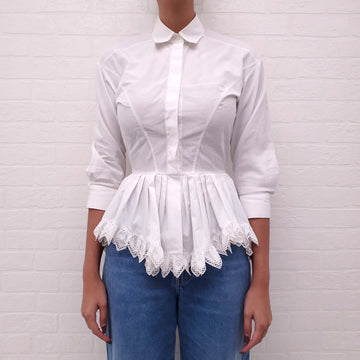 ALAÏA WHITE PEPLUM EYELET BUTTON UP BLOUSE - SIZE 36