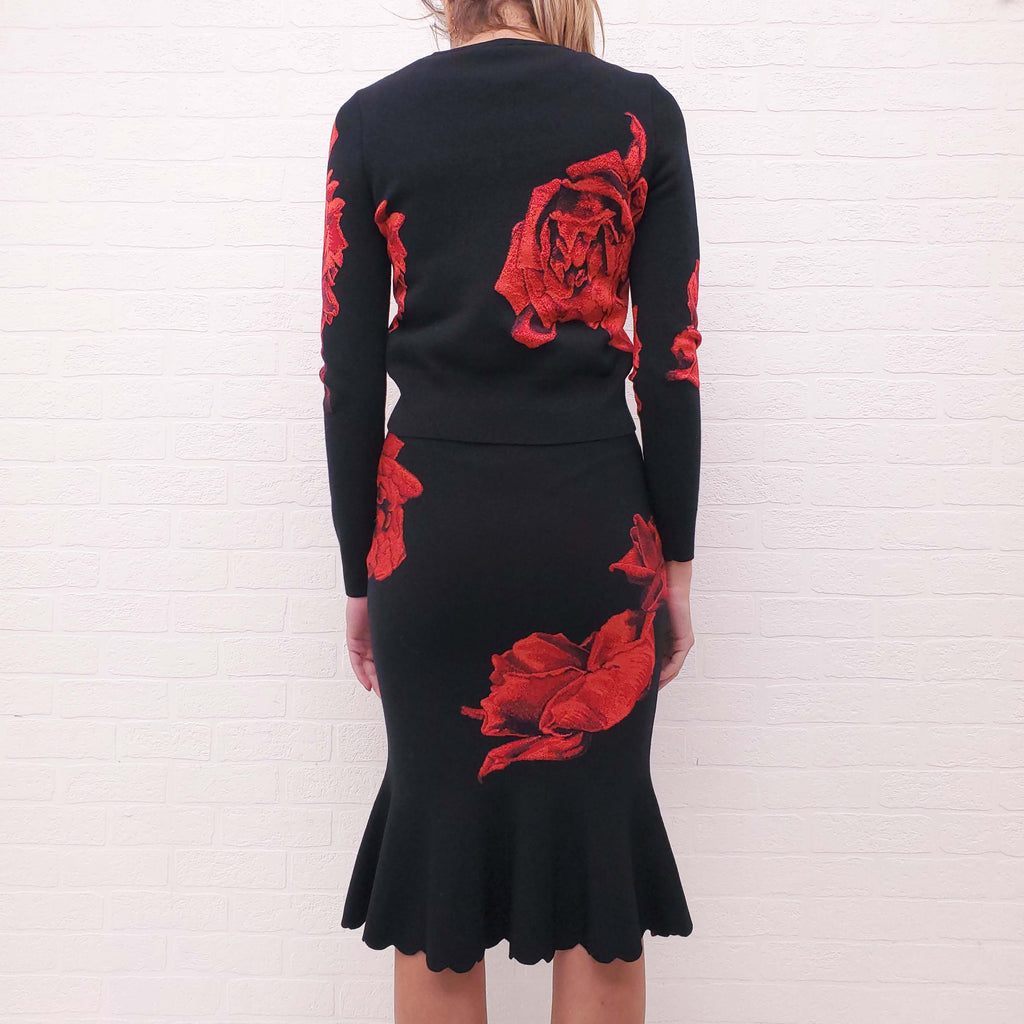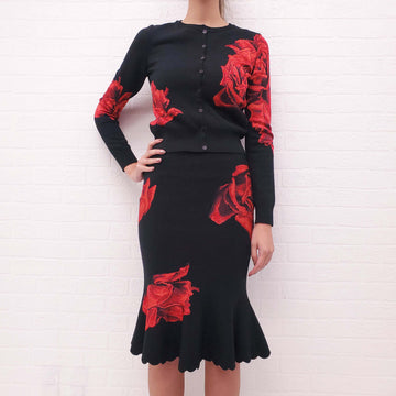 ALEXANDER MCQUEEN BLACK AND RED FLORAL SKIRT SET - SIZE S