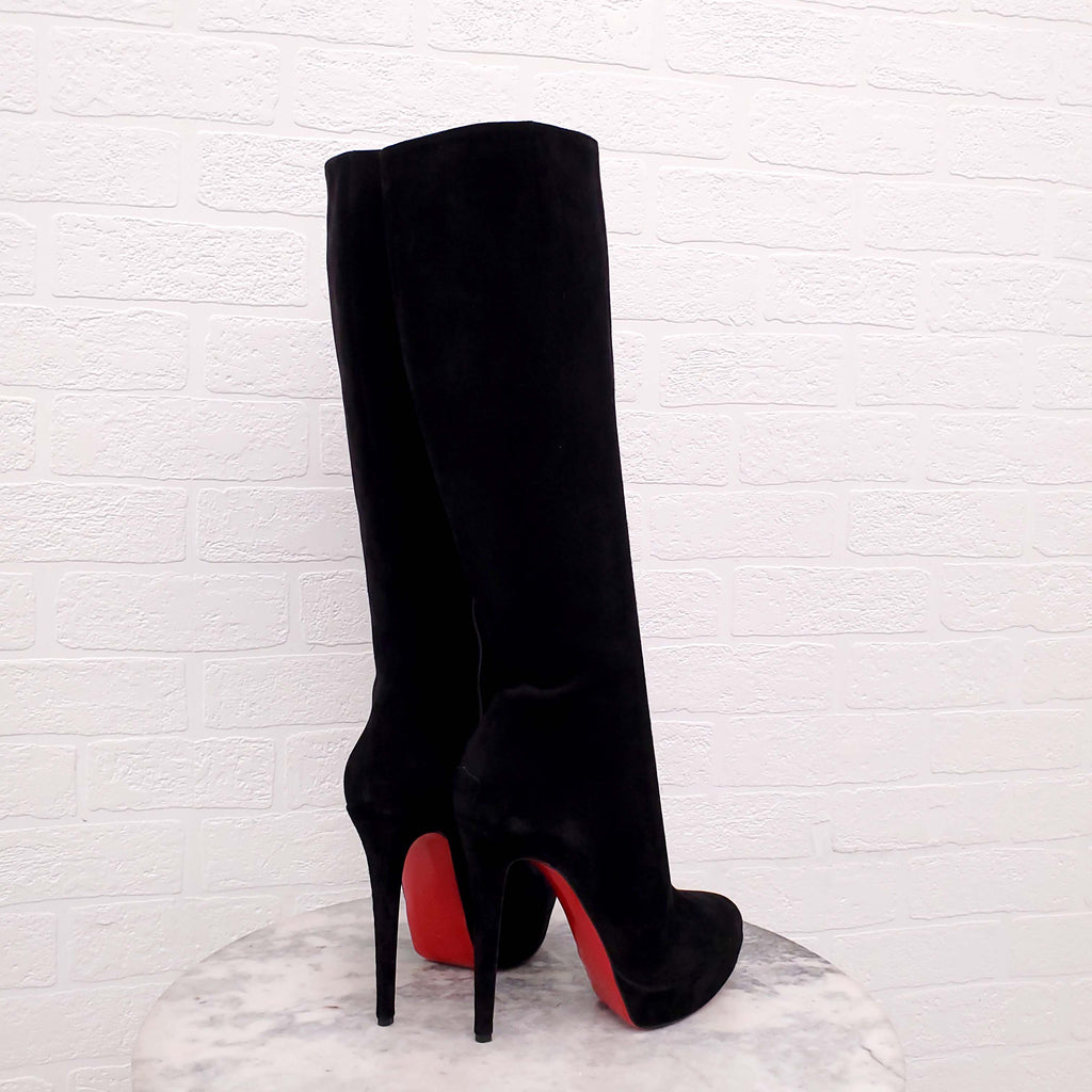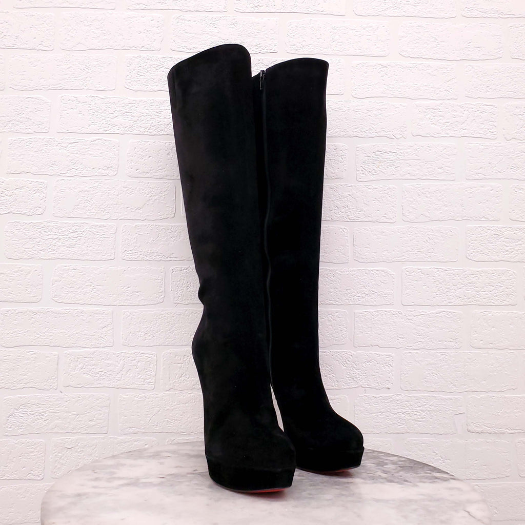 CHRISTIAN LOUBOUTIN BLACK SUEDE THIGH HIGH BOOTS - SIZE 39