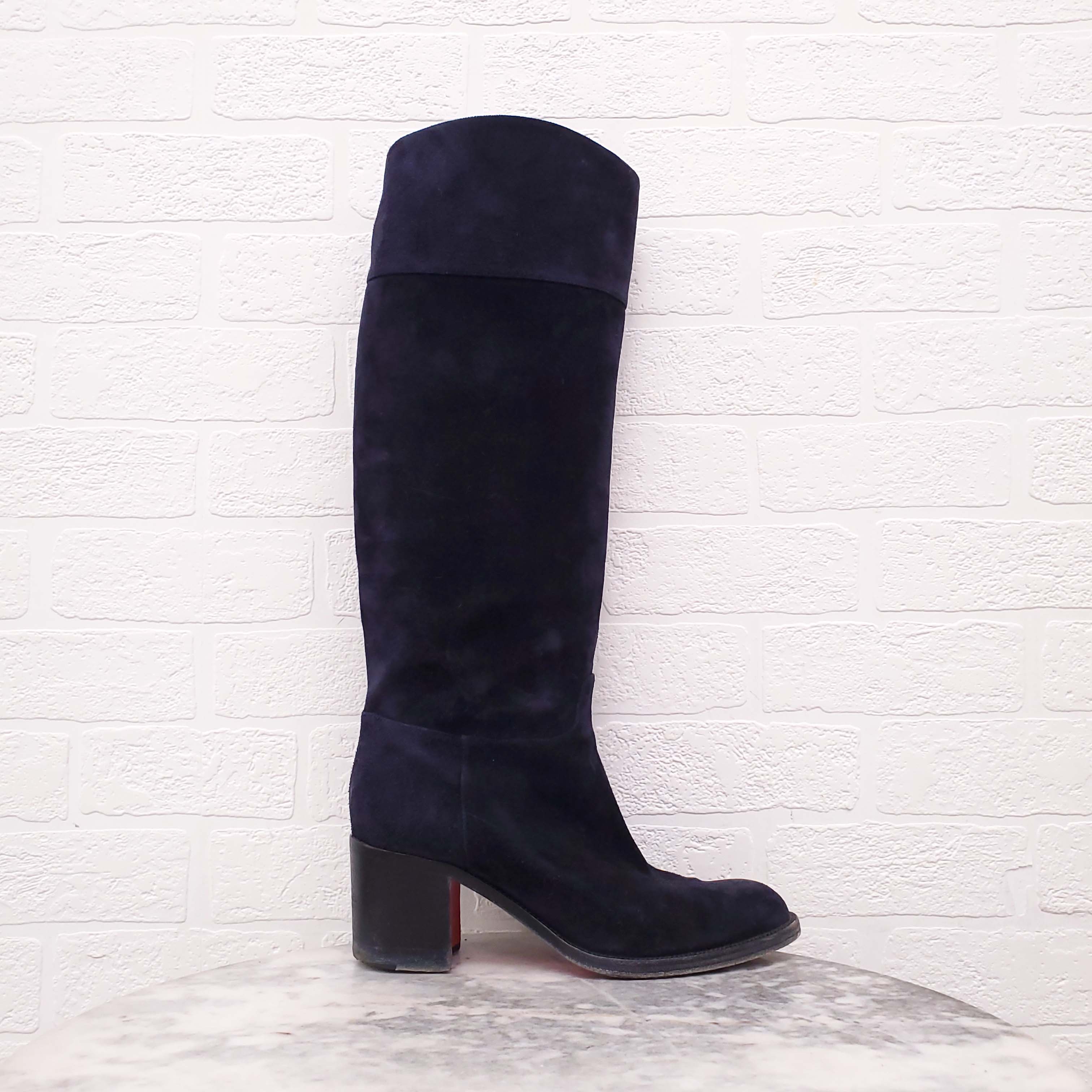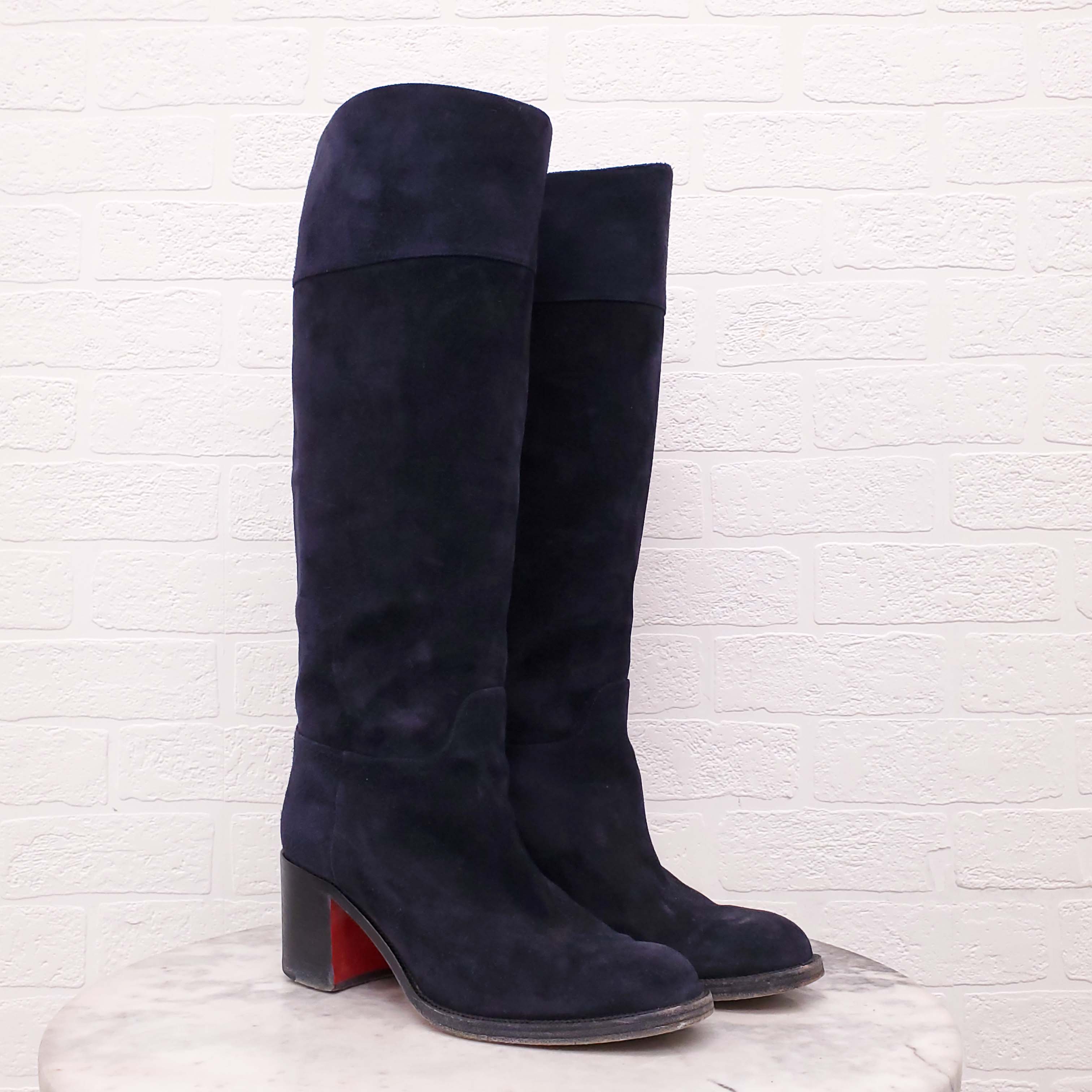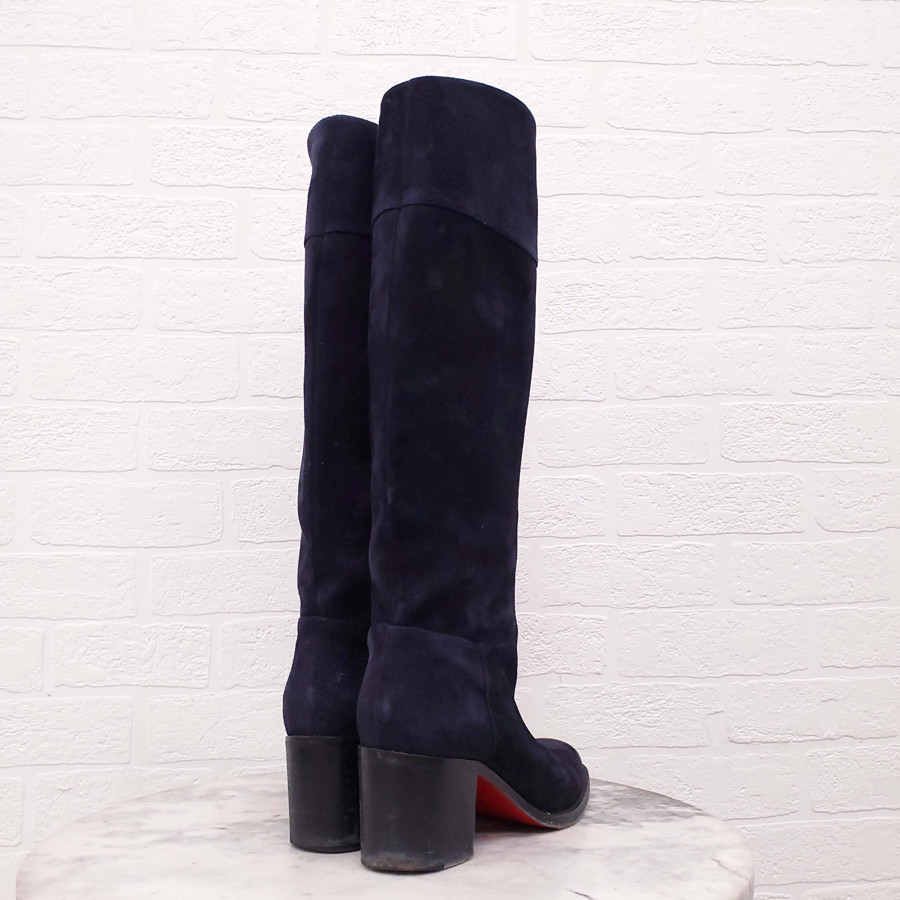 CHRISTIAN LOUBOUTIN NAVY SUEDE BOOTS - SIZE 40
