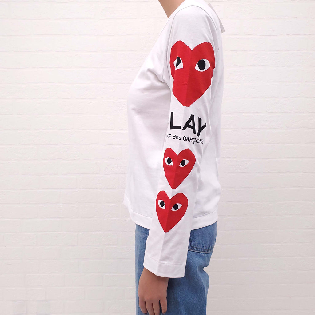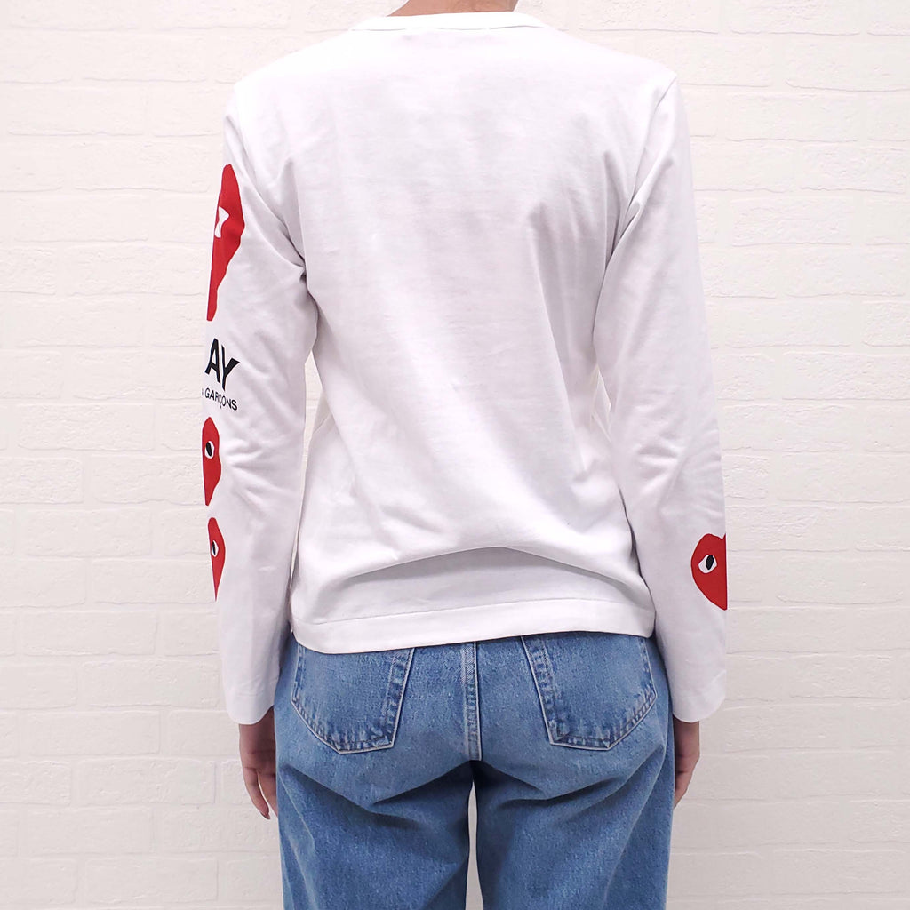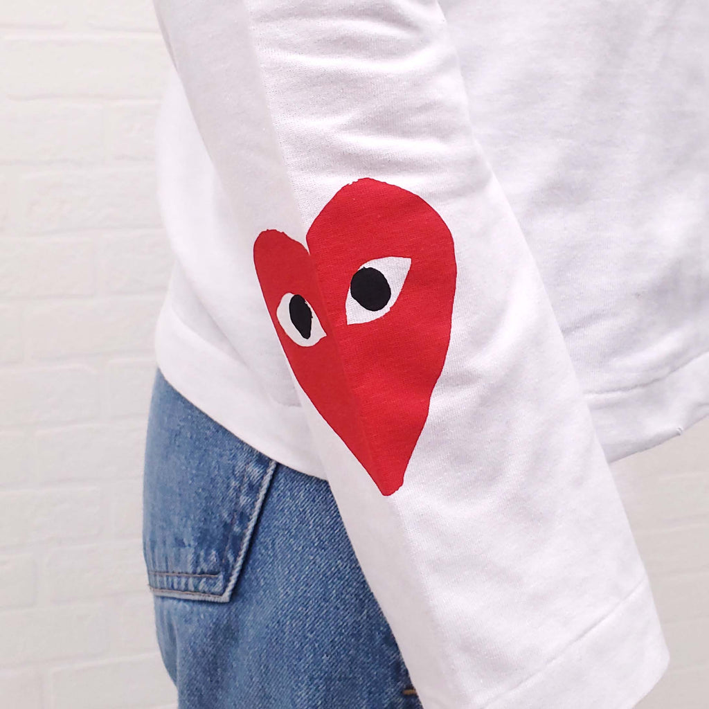 COMMES DES GARÇONS PLAY WHITE LONG SLEEVE SHIRT WITH LOGO SLEEVE - SIZE L