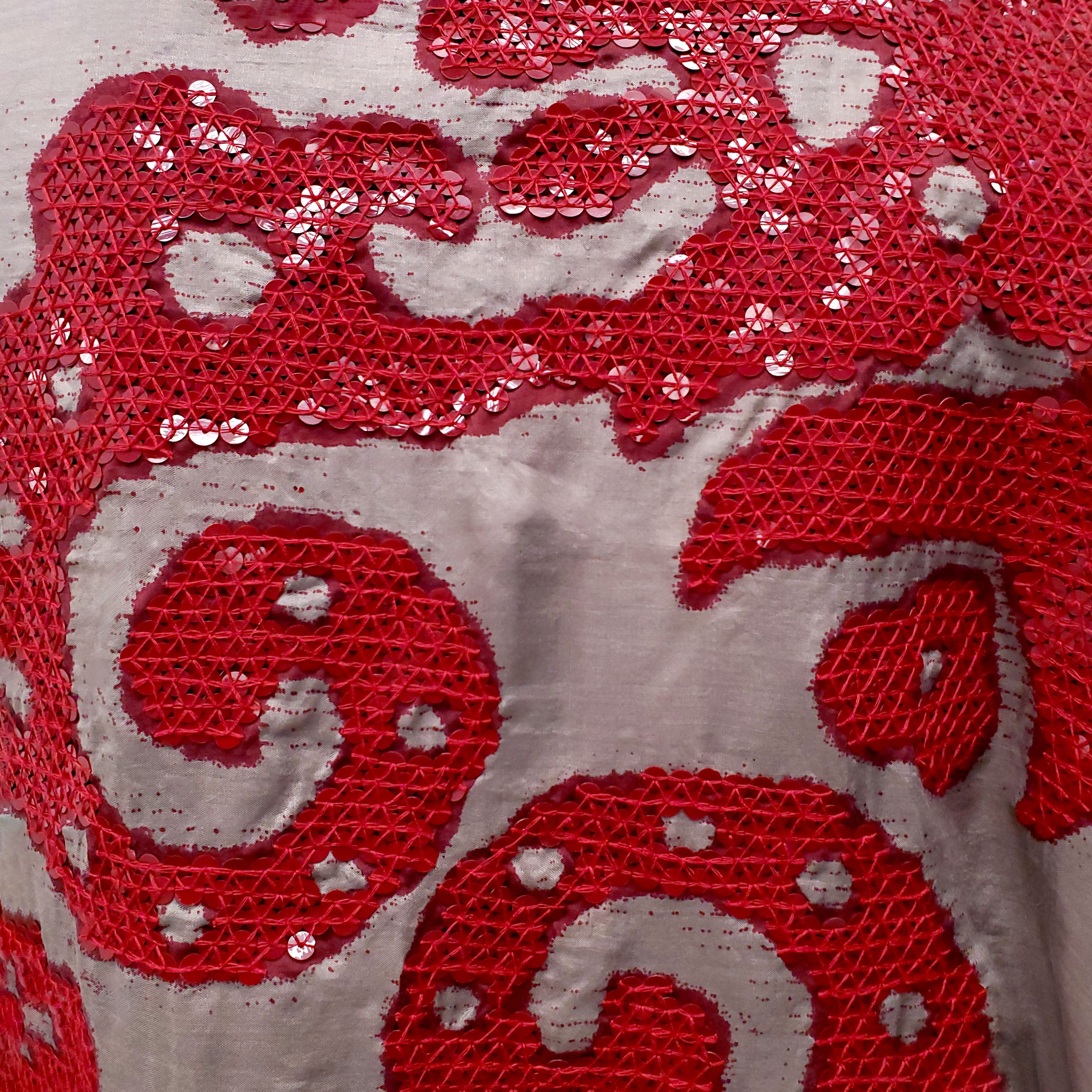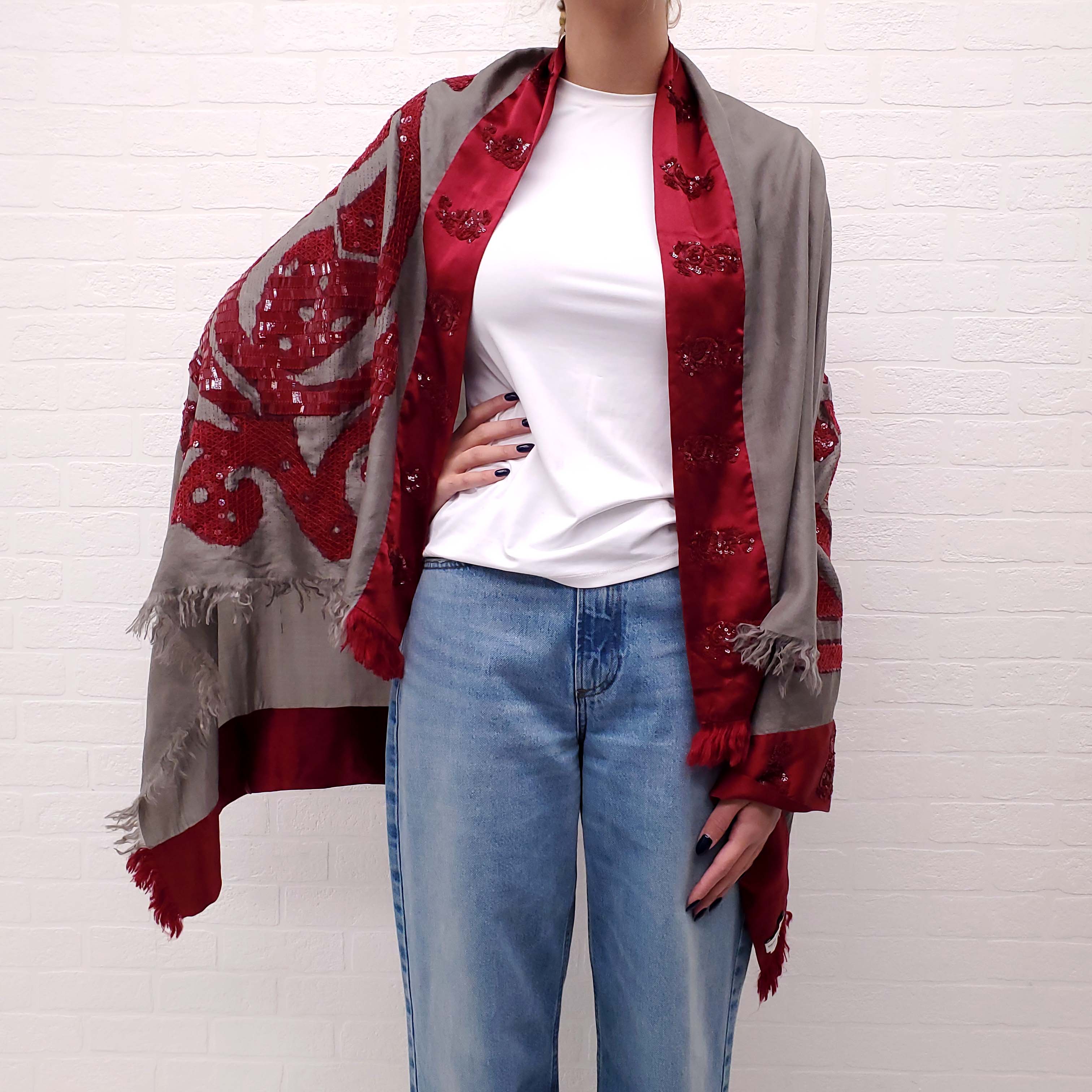 DRIES VAN NOTEN GREY AND RED SEQUIN SHAWL