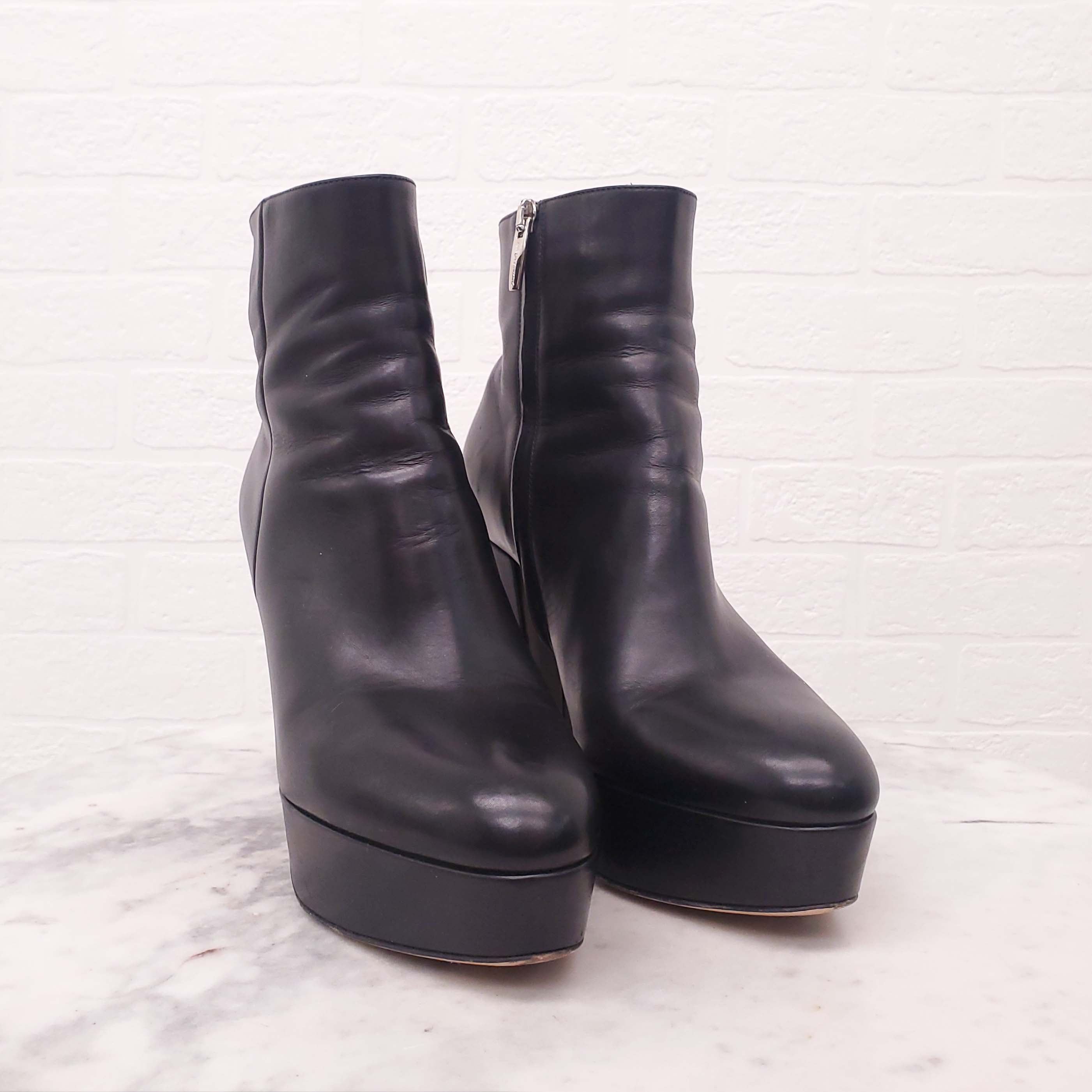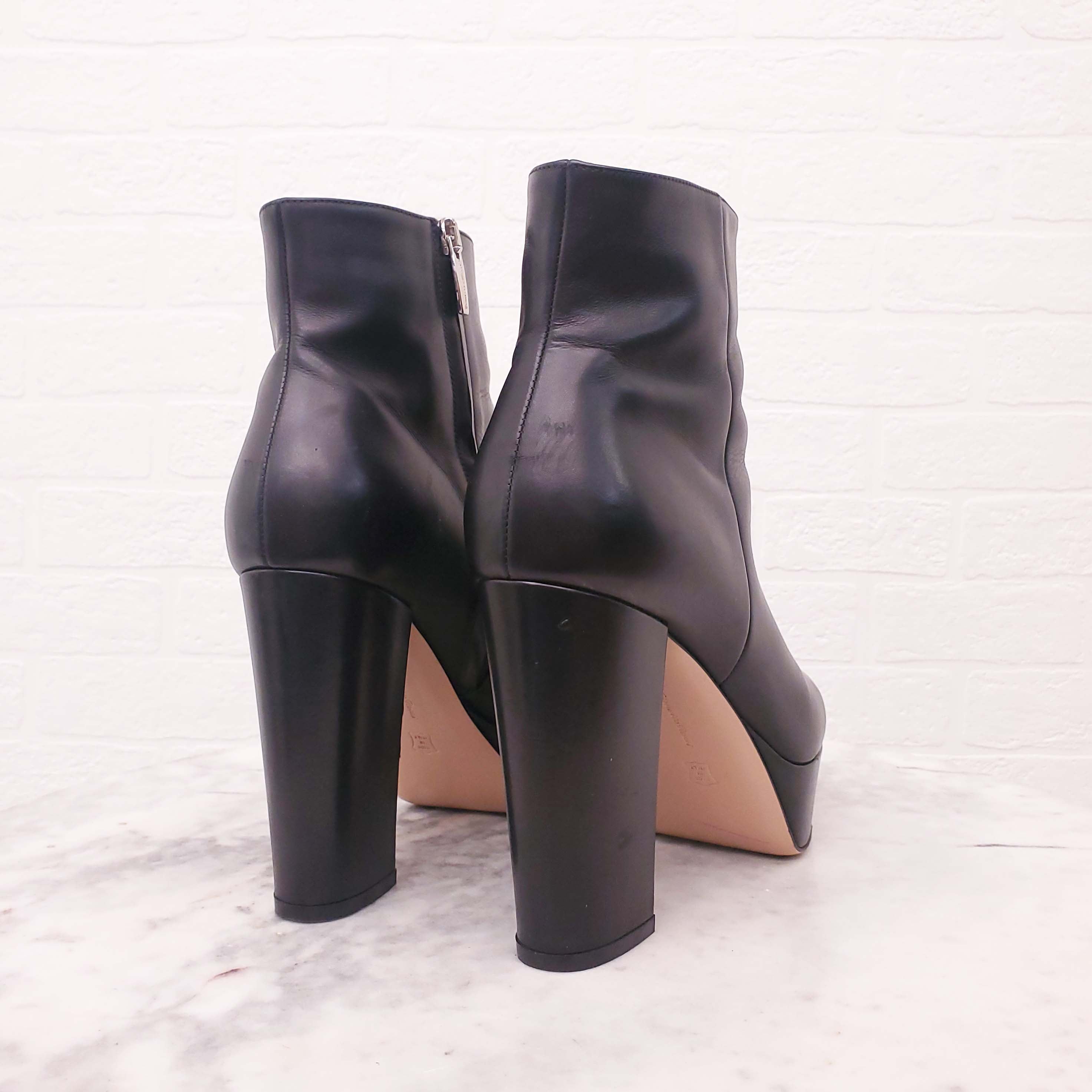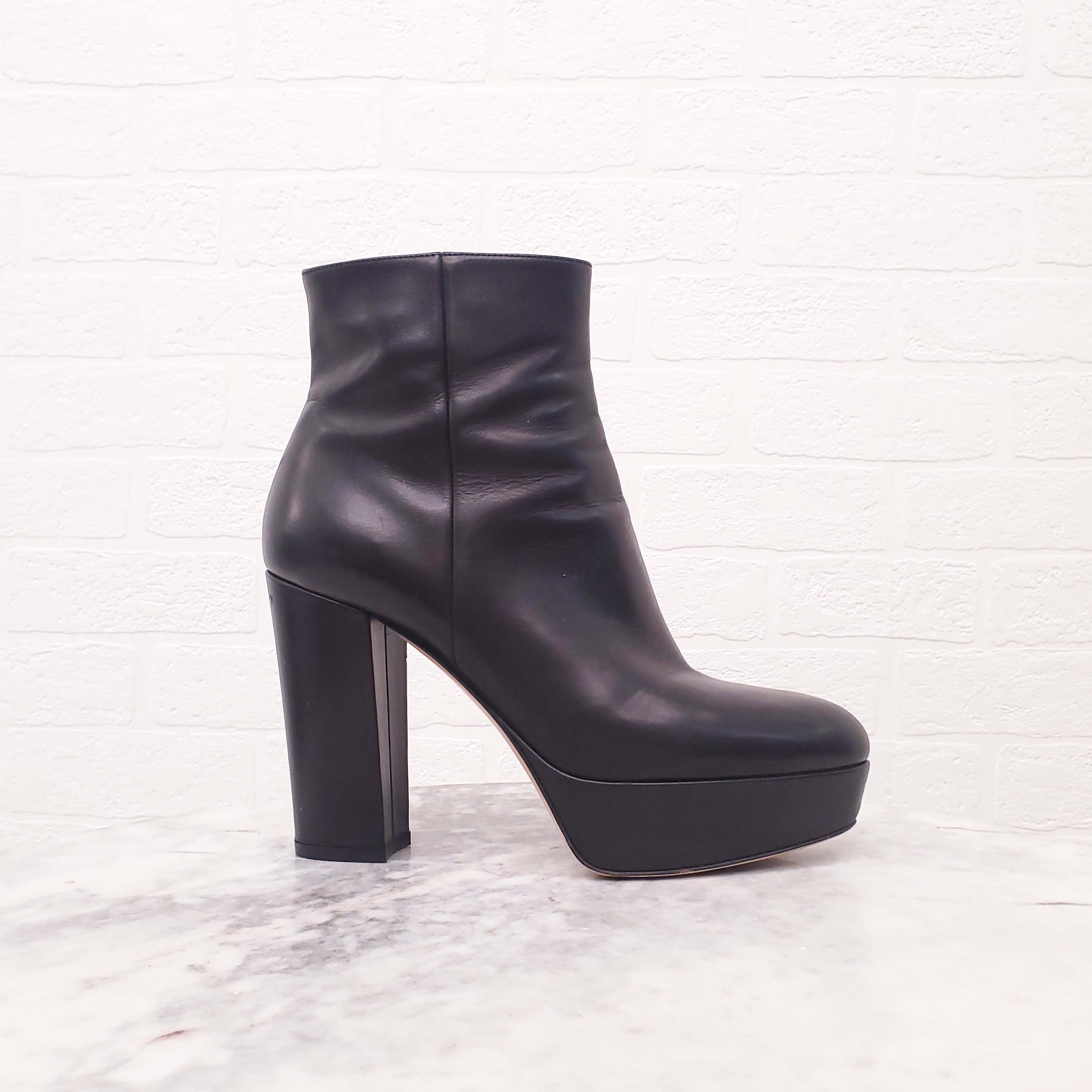 GIANVITO ROSSI BLACK LEATHER PLATFORM BOOTIES - SIZE 37.5