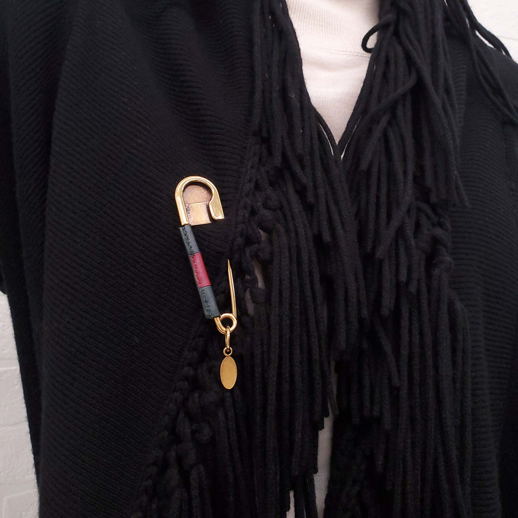 GUCCI BLACK FRINGE CAPE SWEATER WITH PIN DETAIL - SIZE S