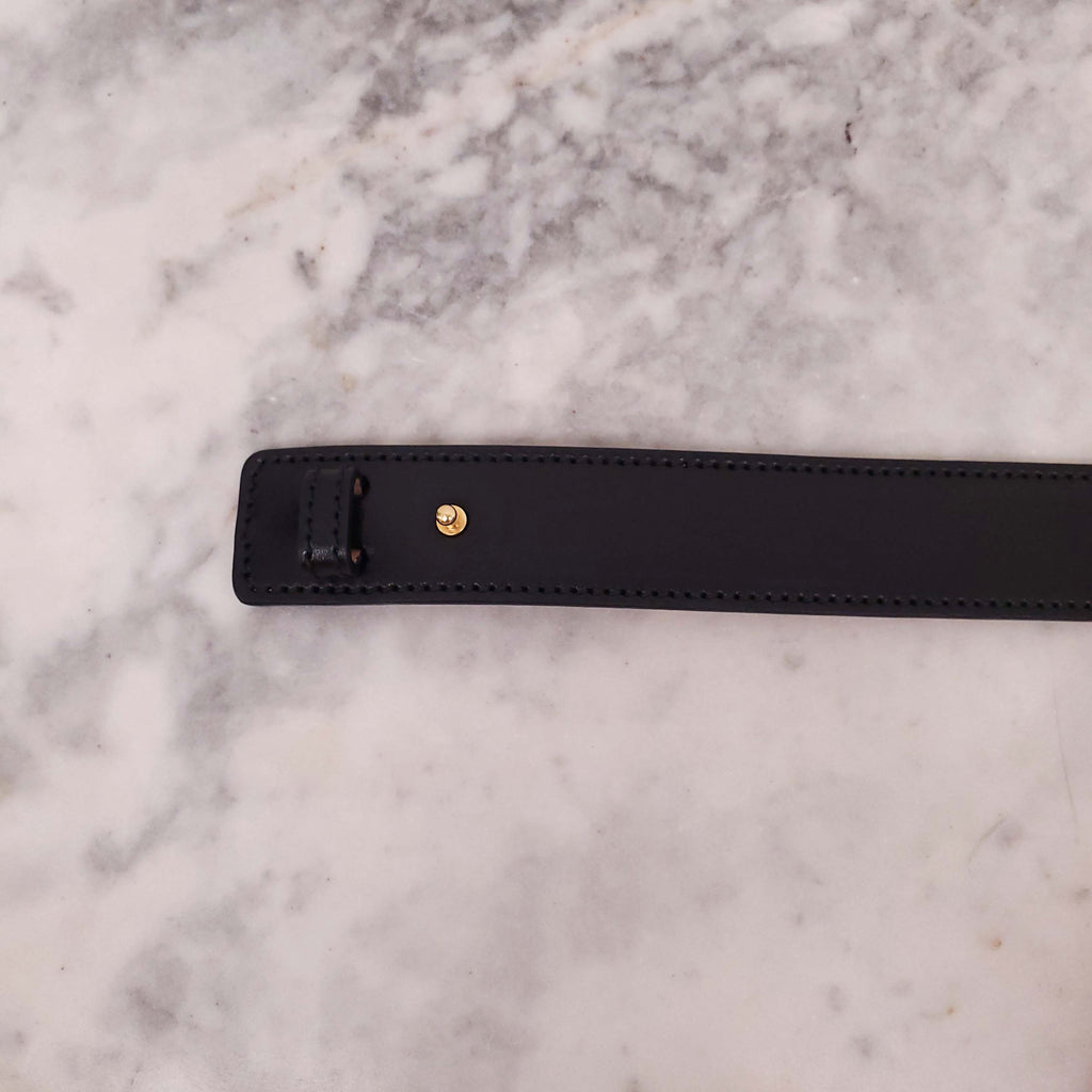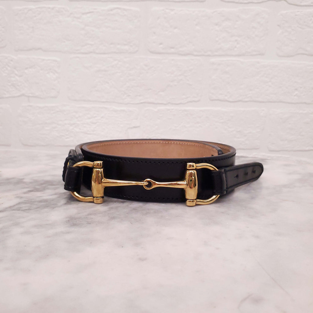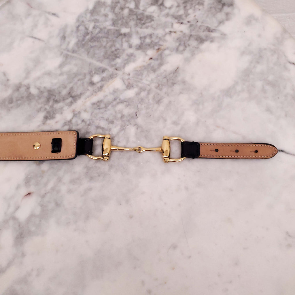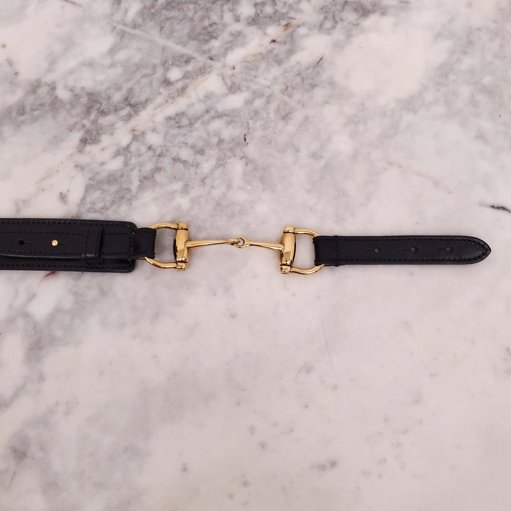 GUCCI BLACK LEATHER BELT WITH GOLD HORSEBIT DETAIL - SIZE M