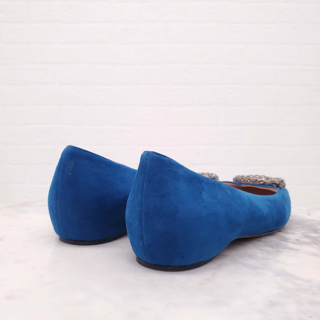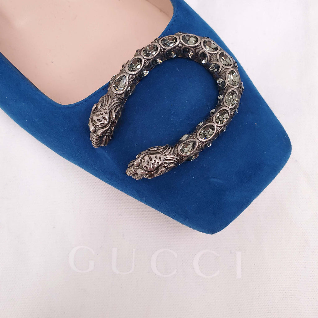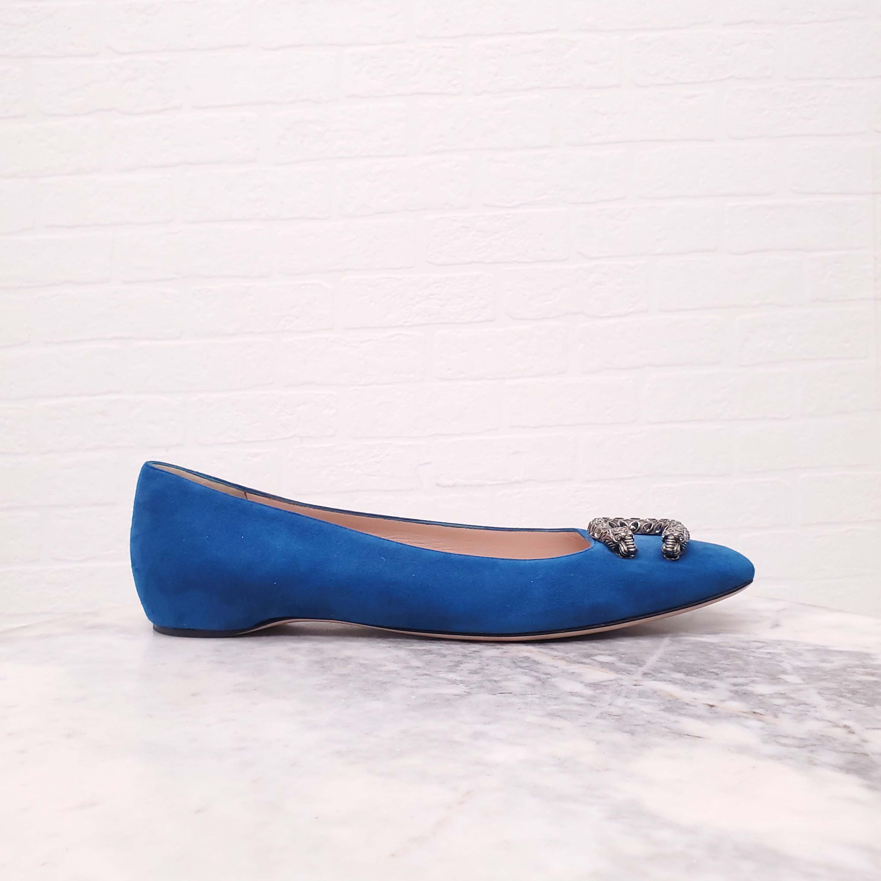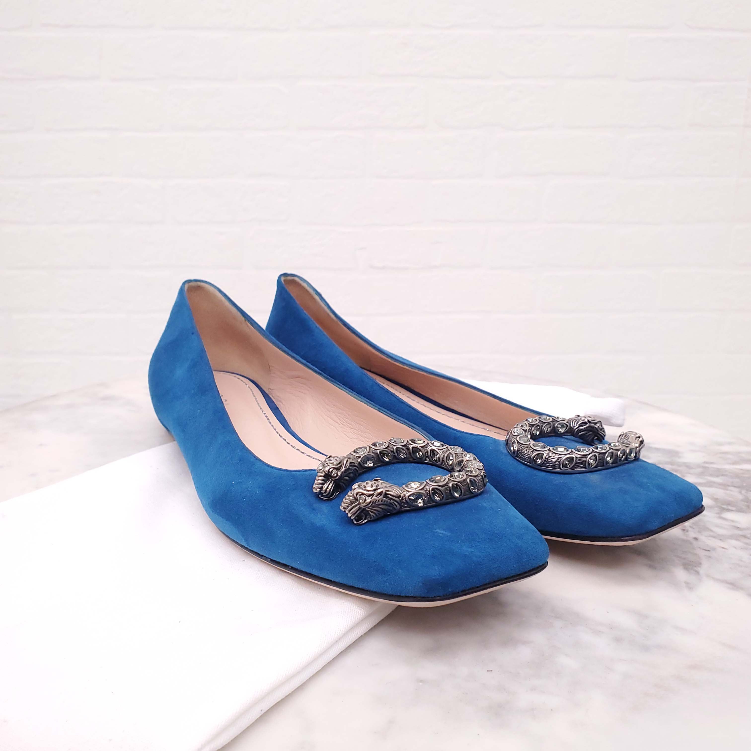 GUCCI DIONYSUS ACCENT BLUE SUEDE FLATS - SIZE 40